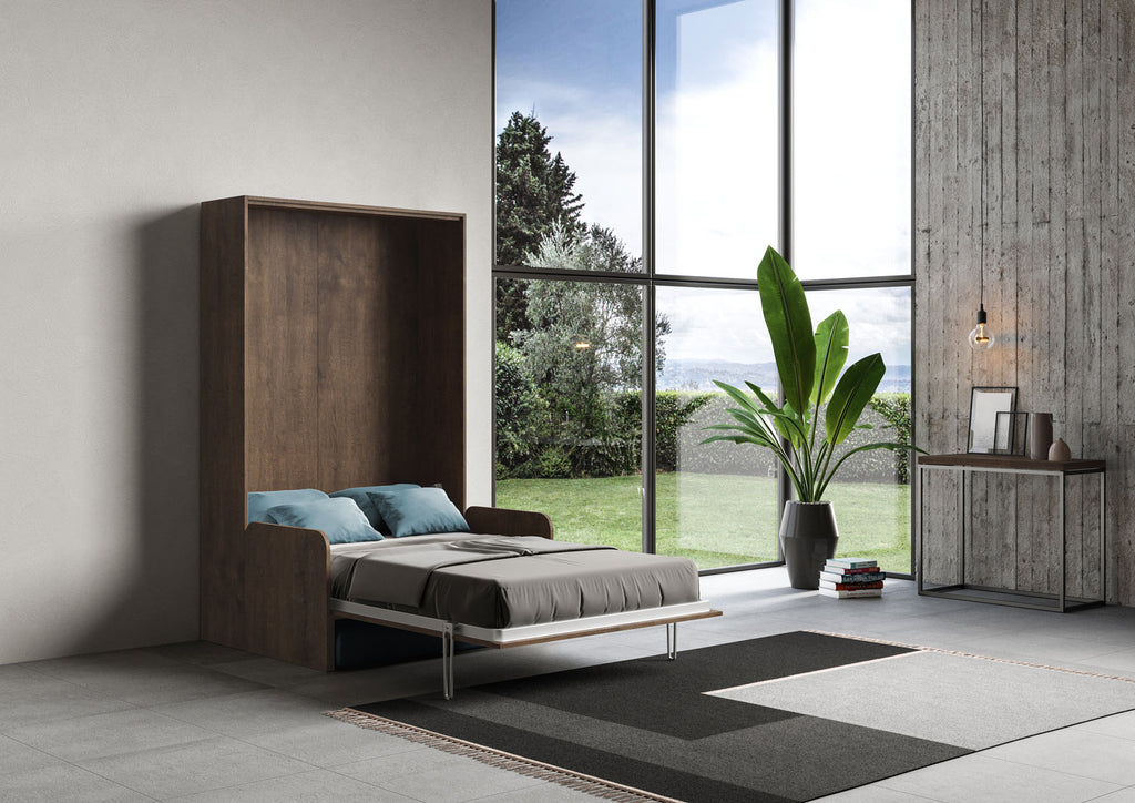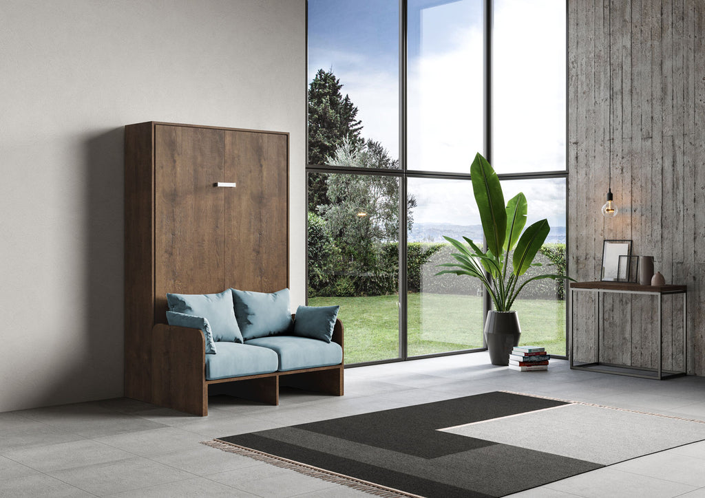 Letto Una Piazza E Mezzo A Scomparsa 120 Kentaro Con Divano Noce e Azzurro
