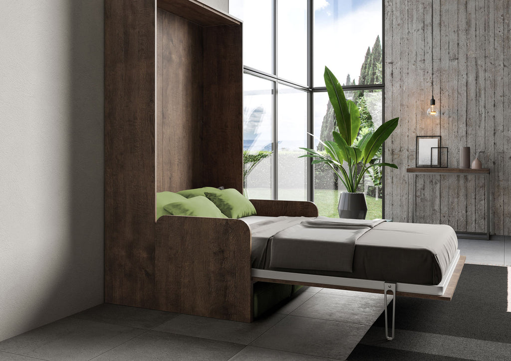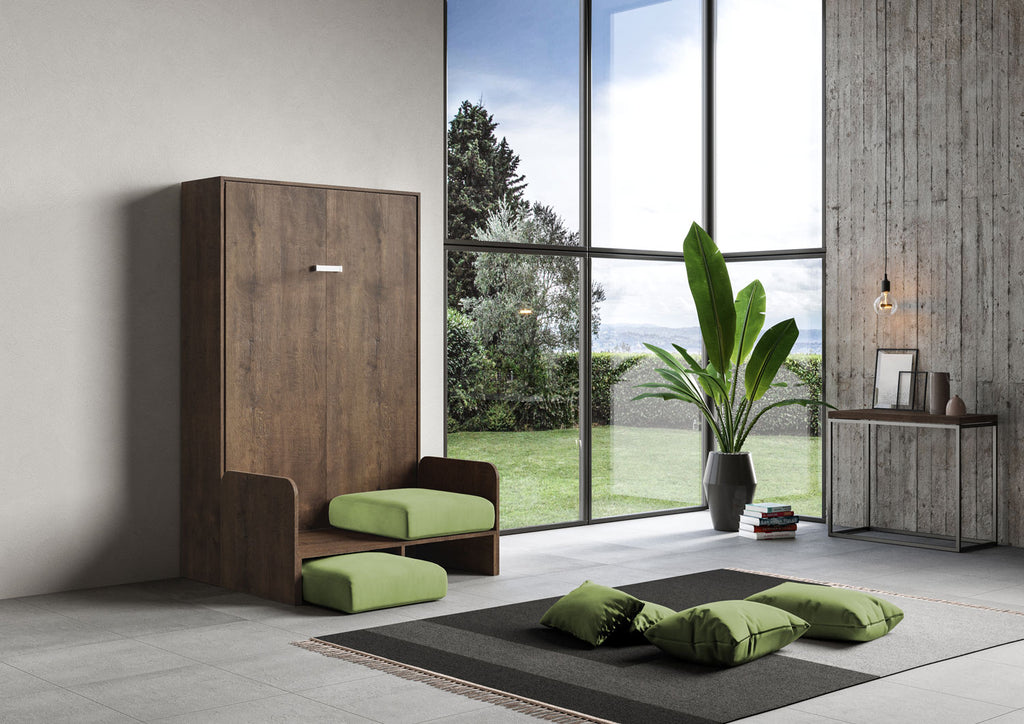 Letto Una Piazza E Mezzo A Scomparsa 120 Kentaro Con Divano Noce e Verde