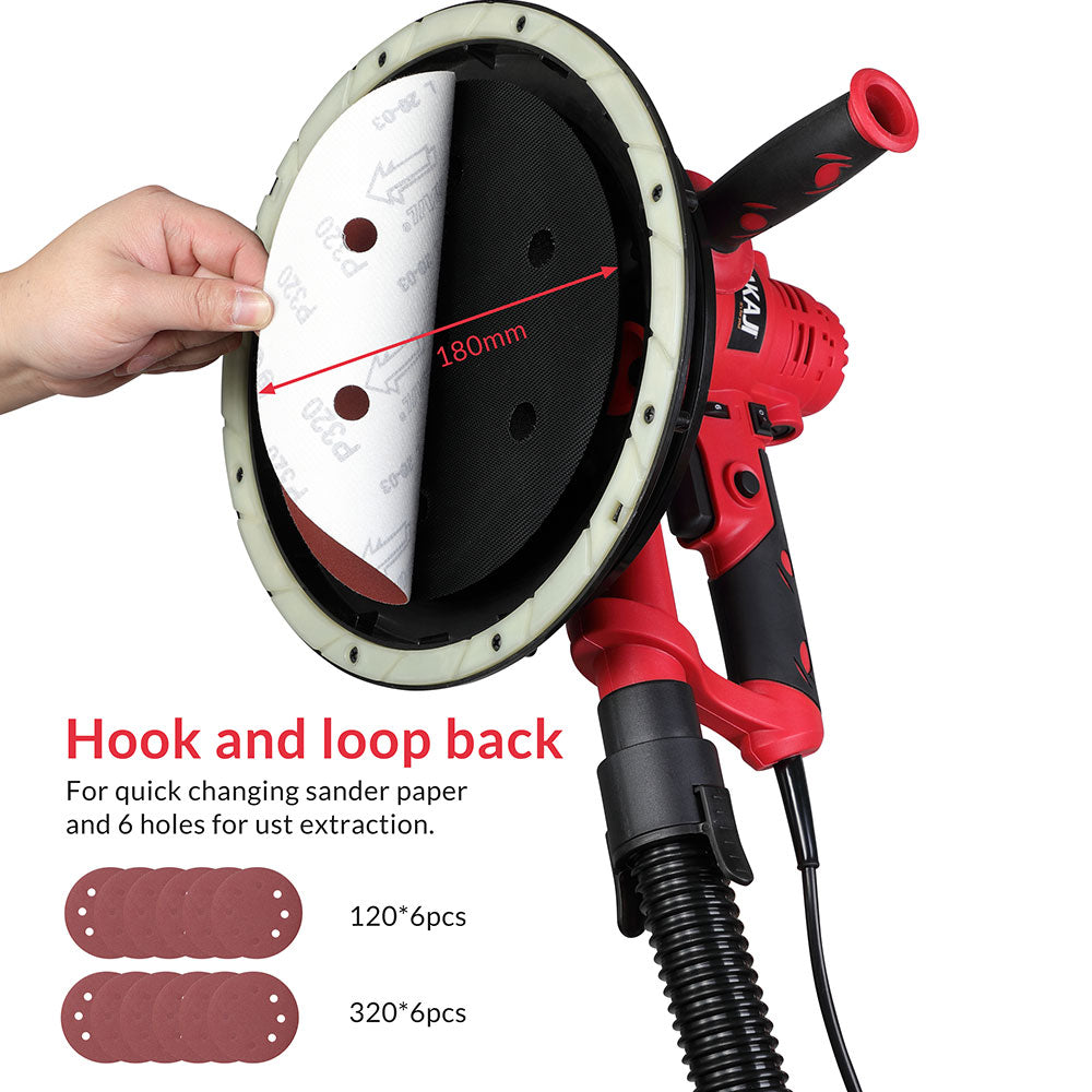 La levigatrice da muro funziona con dischi abrasivi da 22,5 cm, incluso nella confezione troverai ben 12 dischi 6 da 120 e 6 da 320