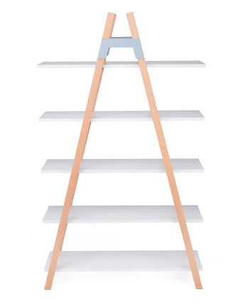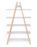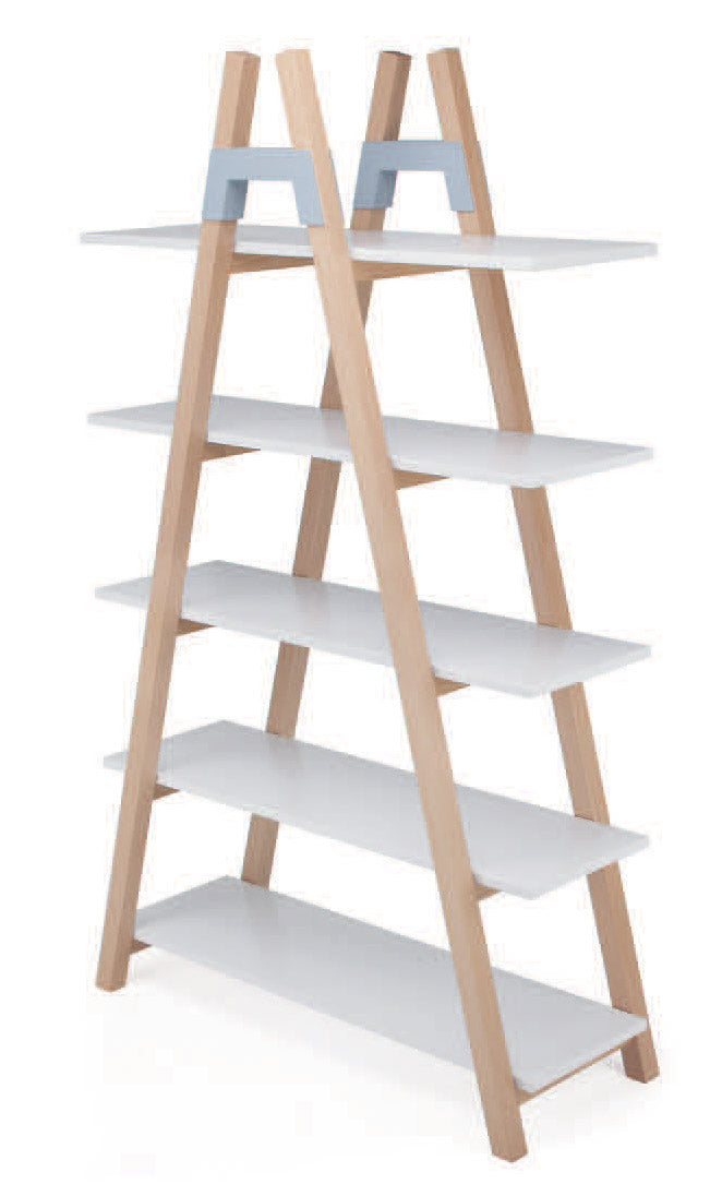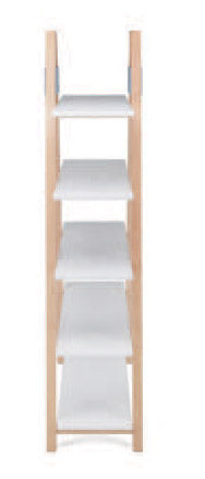 La struttura principale è in legno massello di faggio naturale a sezione quadrata da 4x4 cm. Le giunzioni poste in alto sono di un delicato blue light. I ripiani sono in MDF laccato bianco di spessore 1,5 cm. Il montaggio è semplice e veloce. Inserendo nella parte inferiore una staffa aggiuntiva presente nella confezione, si possono unire più librerie estenden- do così la superficie del ripiano. La libreria può essere completamente igienizzata utilizzando una spugna o un panno in microfibra con prodotti detergenti e/o igienizzanti.
