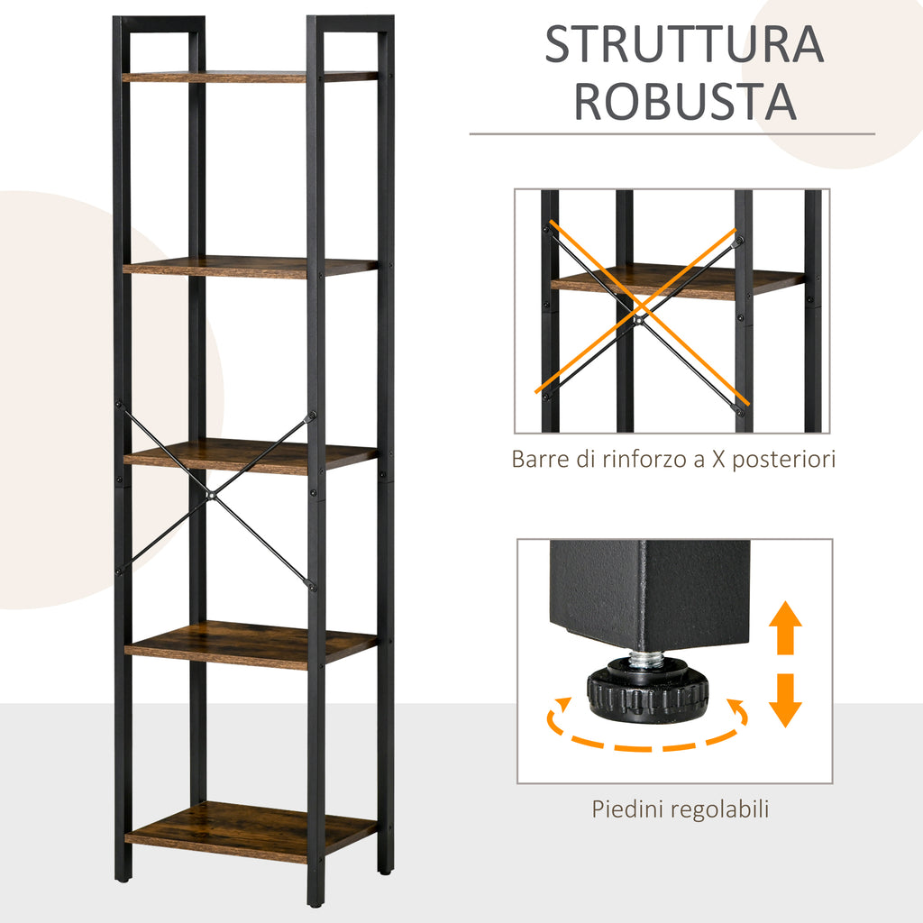 Libreria 5 Ripiani 40x30x154 cm in Legno e Acciaio Marrone Rustico