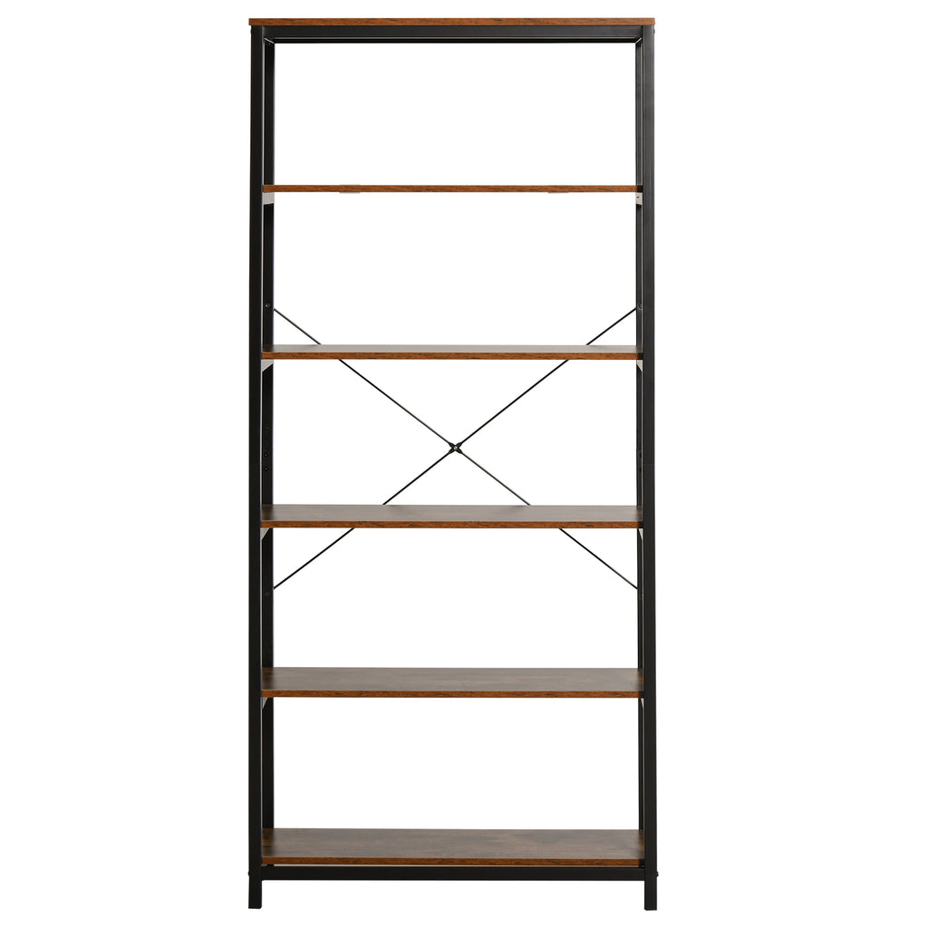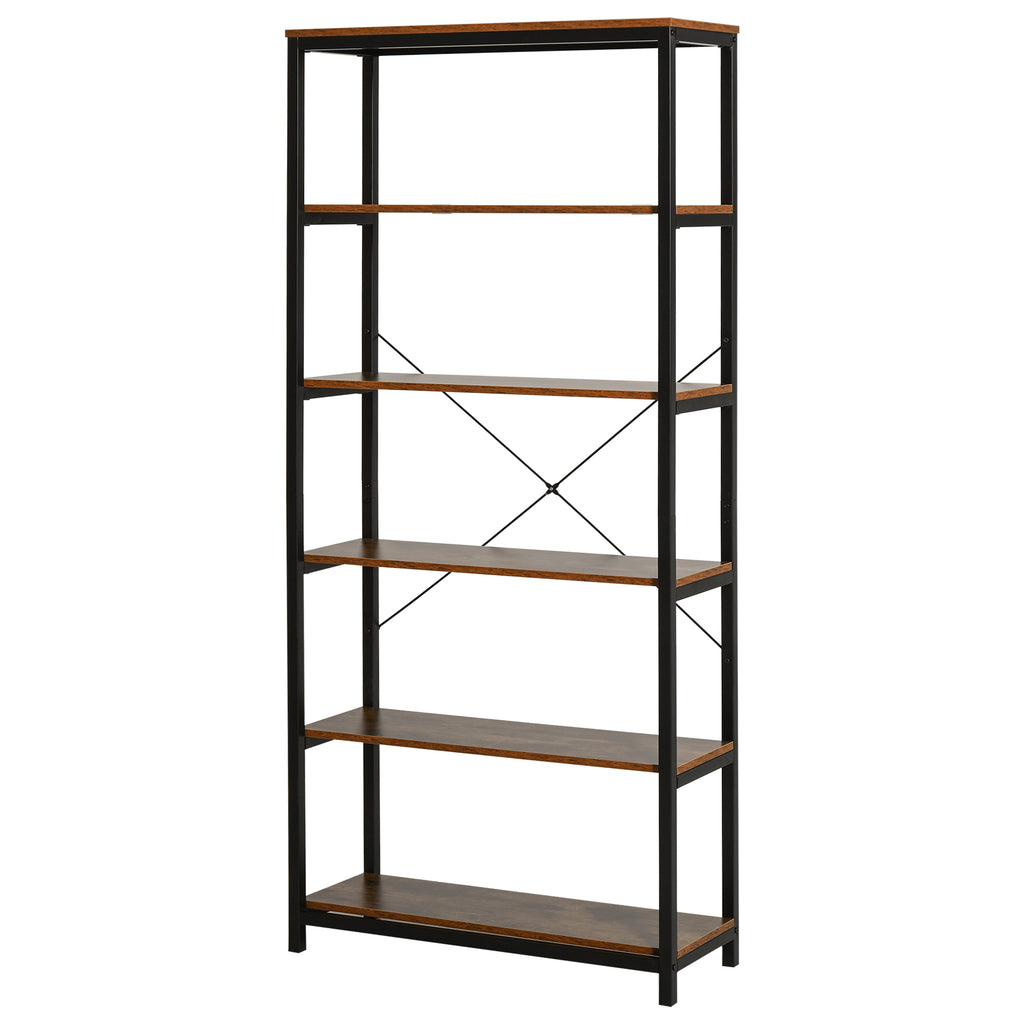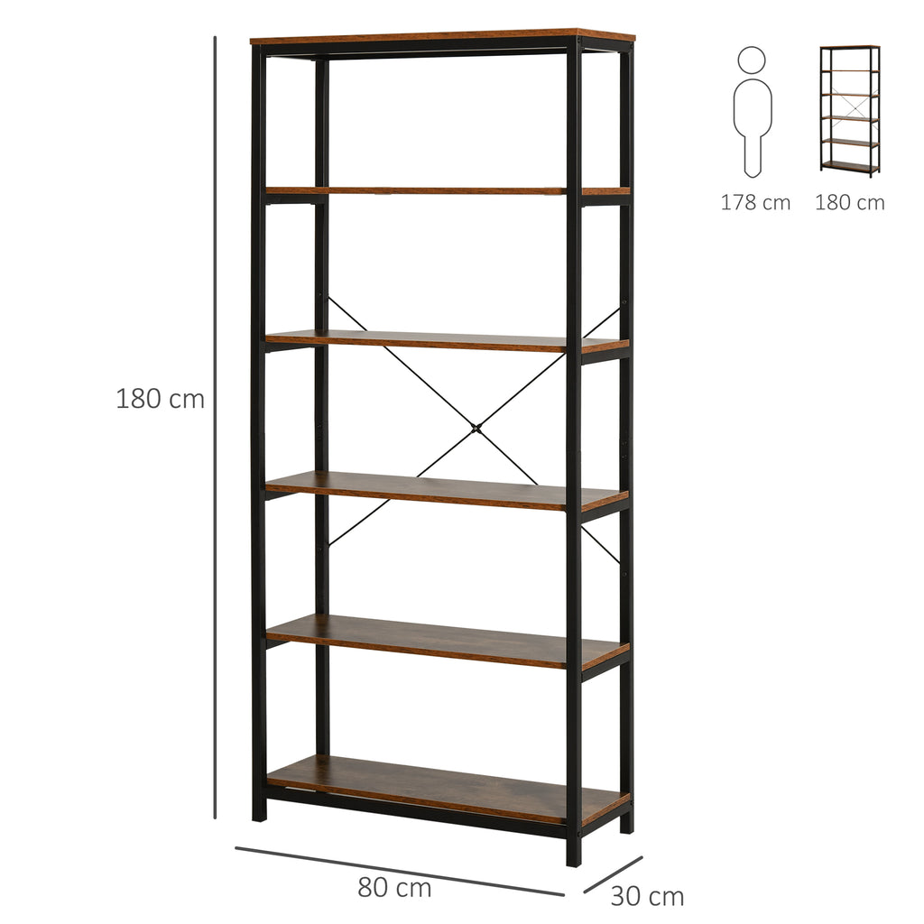 Libreria 6 Ripiani 80x30x180 cm In Legno e Metallo Nera
