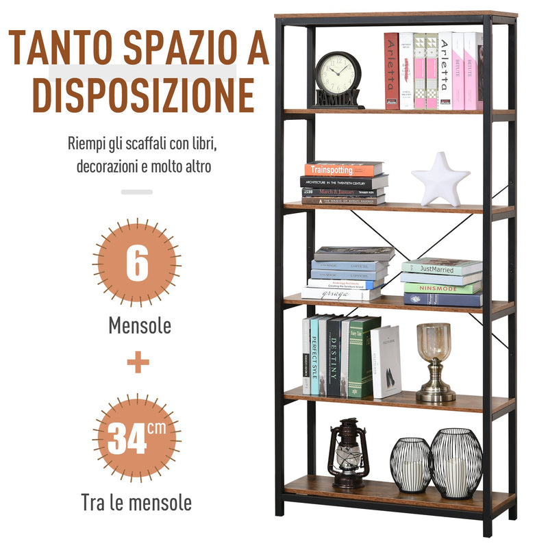 Porta nella tua casa una calda atmosfera in stile industriale con questa libreria . Costruita in legno e metallo, ha sei comode mensole su cui disporre libri, vasi di fiori e cornici. Grazie alle sue linee essenziali e il suo look minimal è perfetta sia per la casa che per l'ufficio.