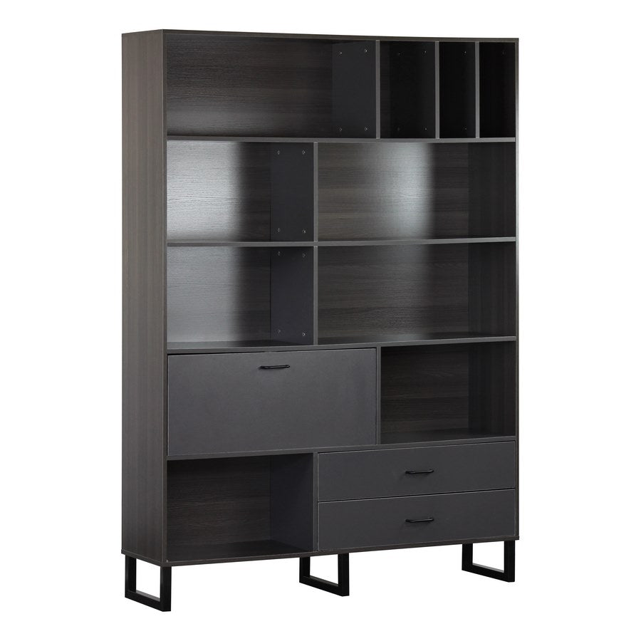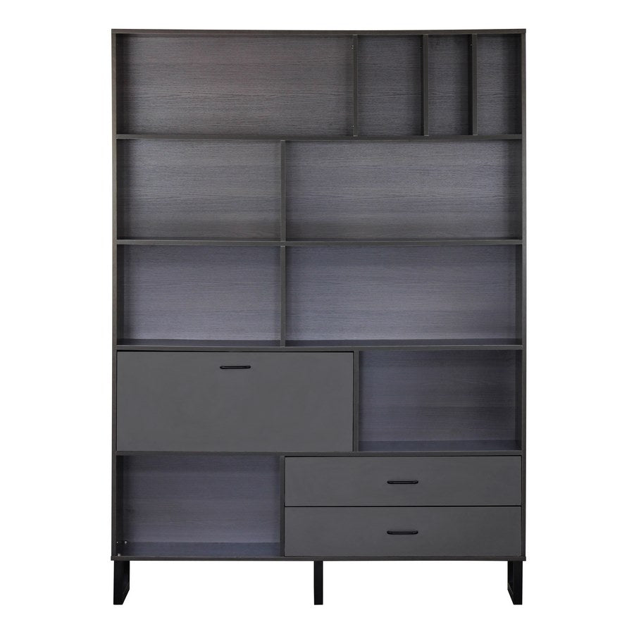 Libreria 8 vani 2 cassetti 1 anta 140x195x35 cm in legno effetto olmo scuro e grigio