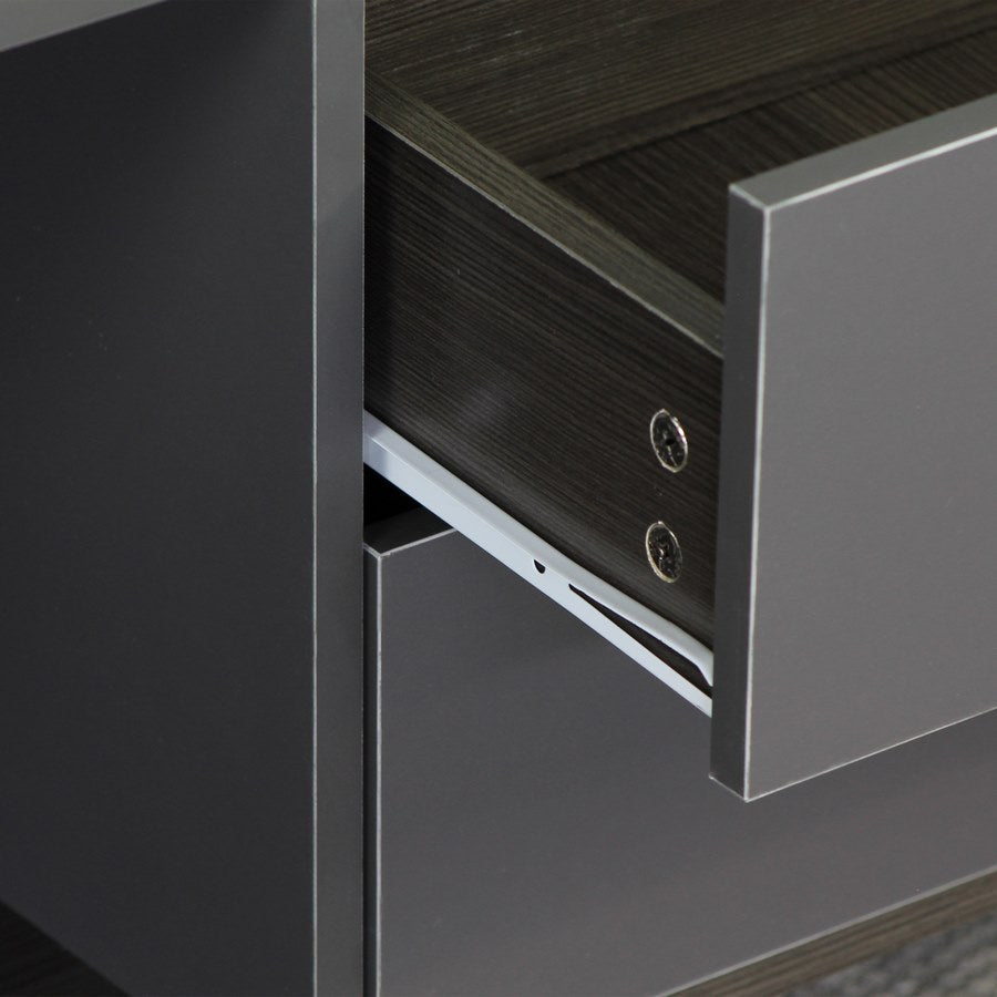 Il mobile libreria Iron rappresenta un elemento d'arredo moderno e contemporaneo e allo stesso tempo versatile e funzionale. Presenta due cassetti, un'anta a ribalta con due pistoni e otto scomparti a vista.