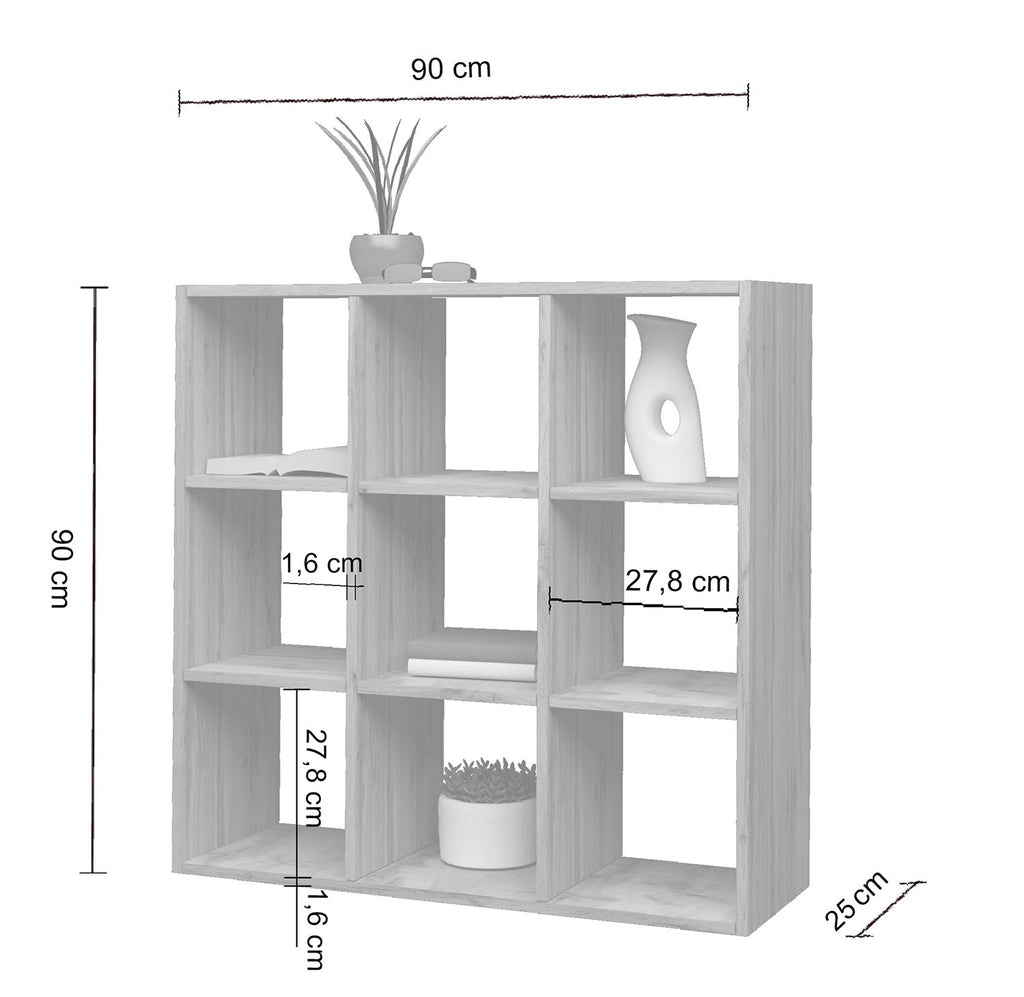 La libreria Maruska da 90 cm è composta da 9 vani e risulta essere perfetta per quelle persone che leggono molto, ma non solo. La sua ampiezza permette anche di riporre oggetti cari, come soprammobili e souvenir di viaggio, ma anche cornici con vecchie foto. La libreria, inoltre, può essere sia poggiata a terra che montata sulla parete, così da non creare ingombro e rendere più semplice la pulizia del pavimento. La libreria MARUSKA da 90 cm è realizzata in melaminico nella tonalità del rovere. Viene fornito in un kit di montaggio con istruzioni chiare e dettagliate ed è in grado di rendere unico qual sia si ambiente in cui viene inserita.