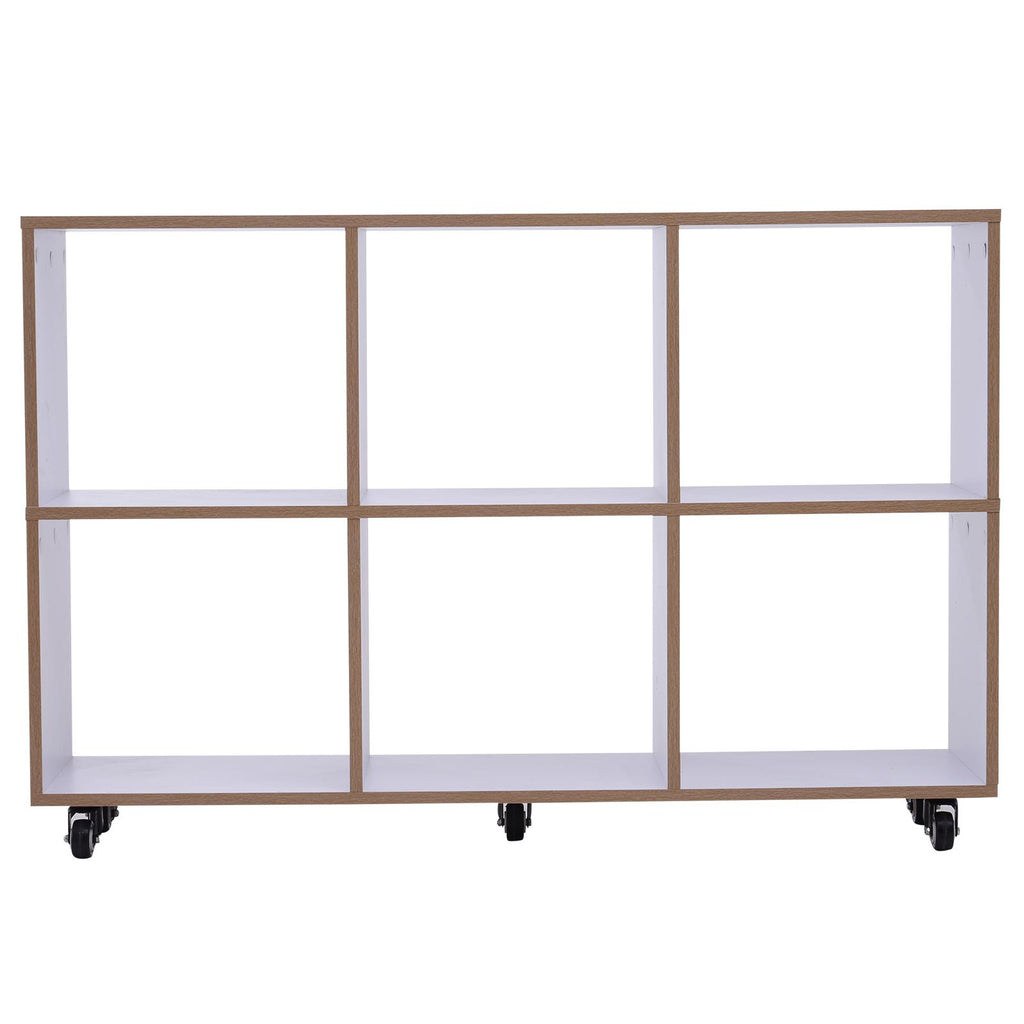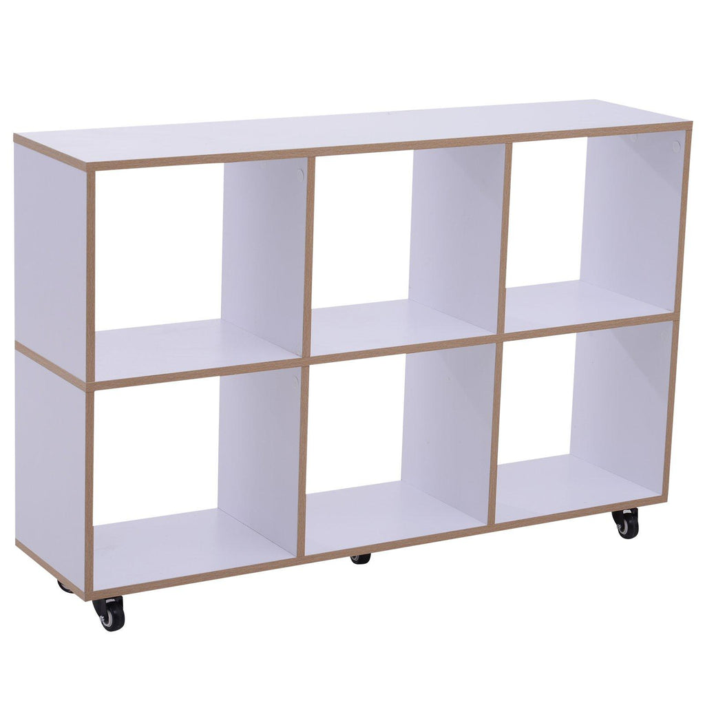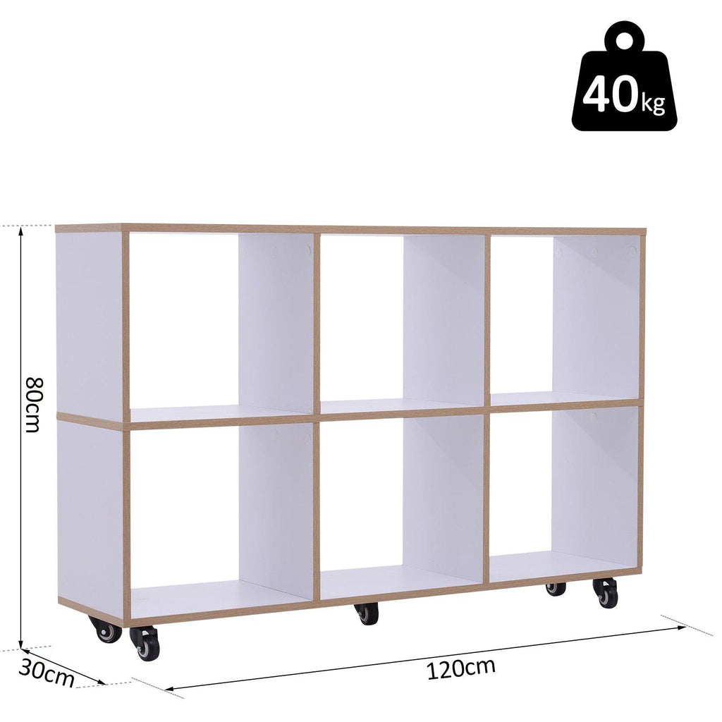 Libreria a 6 Scomparti Aperti con Rotelle in Legno Bianco 120x30x80 cm