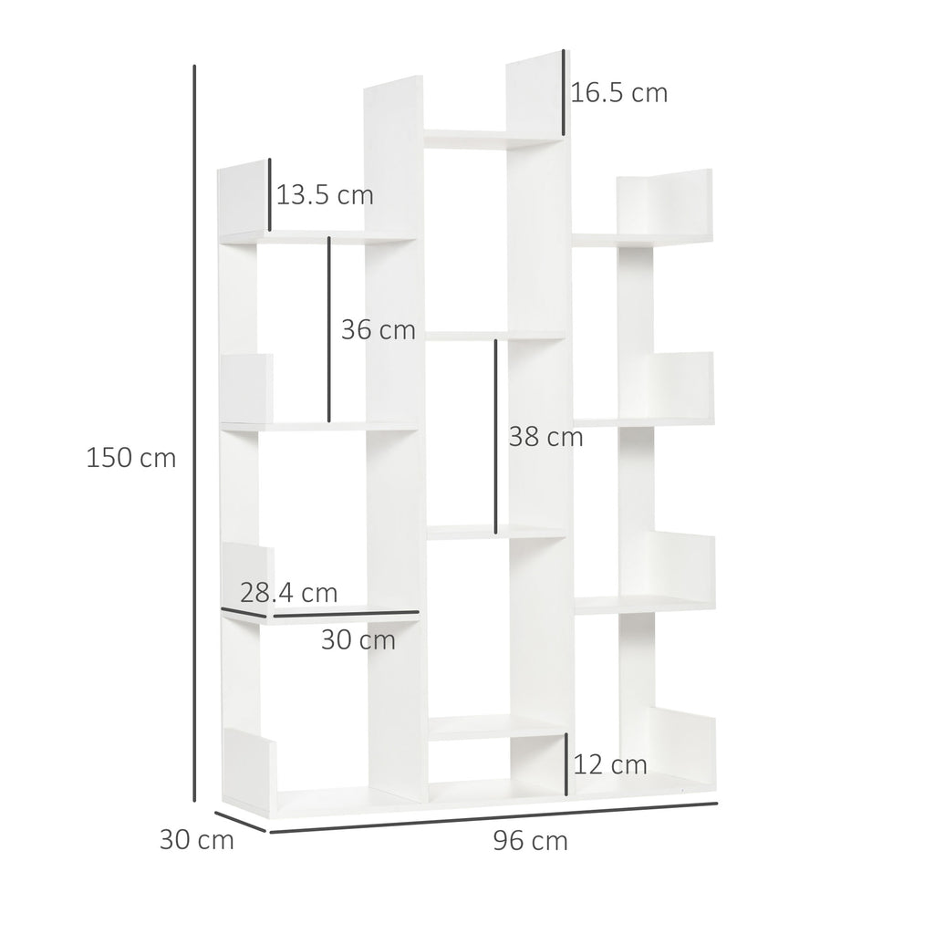 Libreria ad Albero 96x30x150 cm 13 Ripiani Bianco