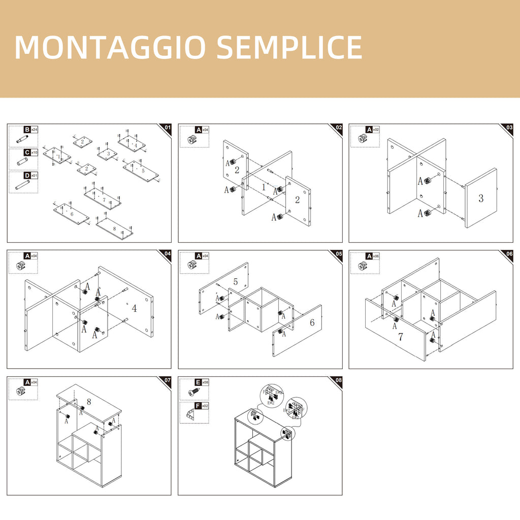 - 4 scomparti aperti per riporre oggetti di diverse dimensioni