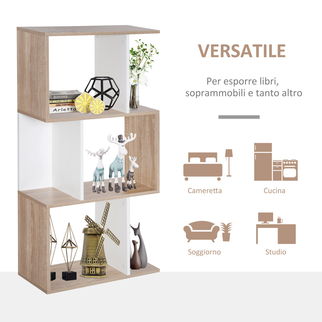 Libreria da Parete Moderna con 3 Ripiani Legno Naturale e Bianco 60x24x111.4 cm