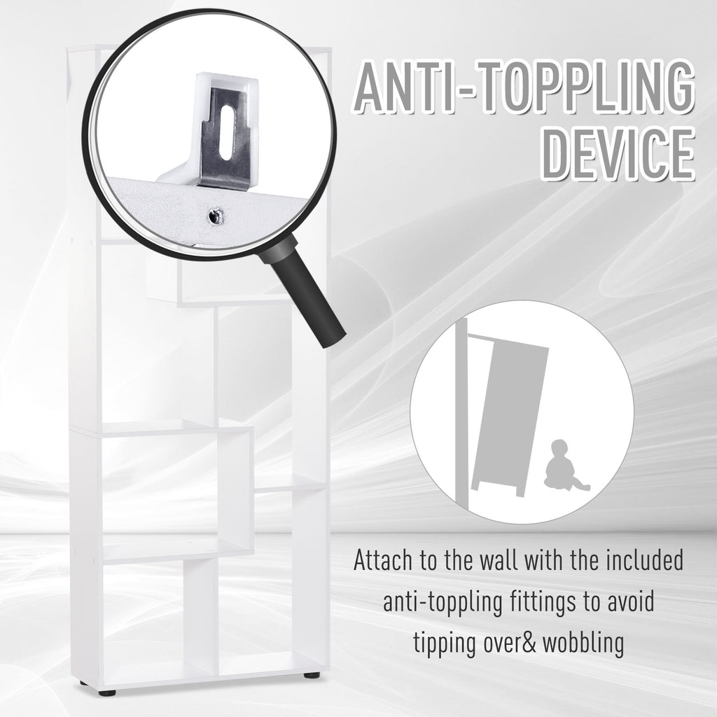 Un must per tutti gli amanti del design, questa libreria moderna porta un tocco di originalità nella tua casa. Realizzata con spessi pannelli in legno truciolare, sostiene un peso fino a 80kg e offre 8 sezioni con diverse forme e dimensioni per riporre tutto ciò che vuoi. I piedini proteggono il pavimento dai graffi e aiutano a mantenere la stabilità, mentre il sistema antiribaltamento offre sicurezza di utilizzo. Una libreria a parete minimalista che crea un grande effetto decorativo.