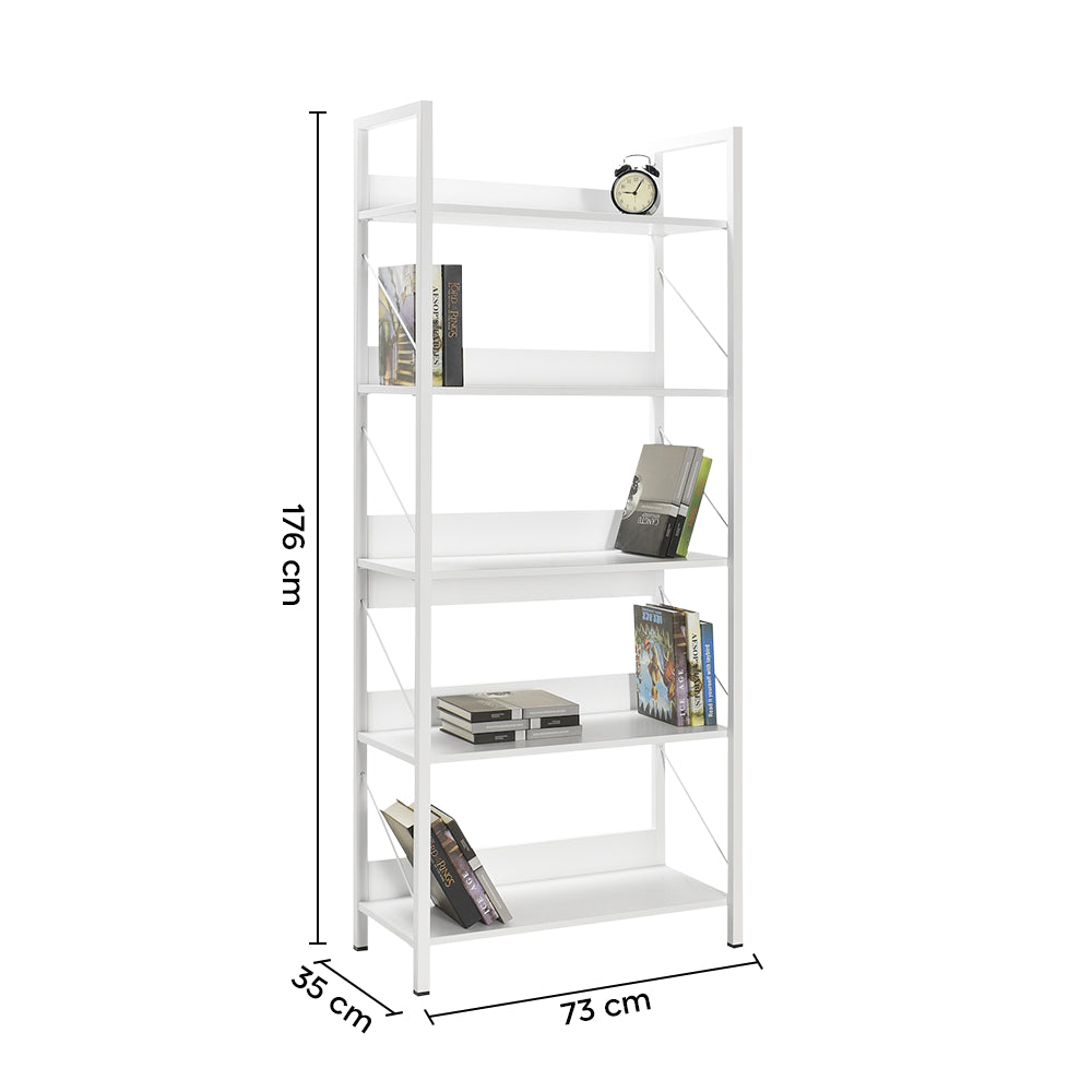 Libreria in Legno 73x176x35 cm Scaffale 5 Ripiani per Ufficio Bianco