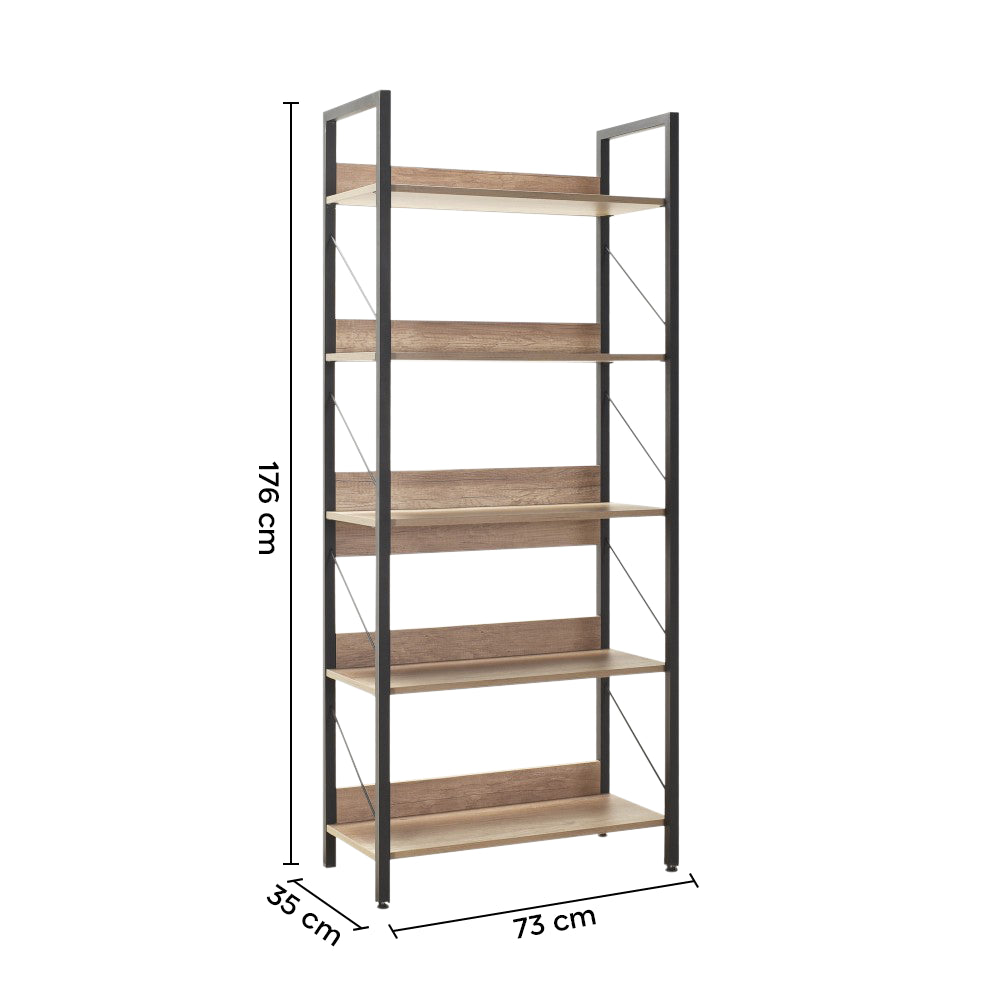 Libreria in Legno 73x176x35 cm Scaffale 5 Ripiani per Ufficio Rovere