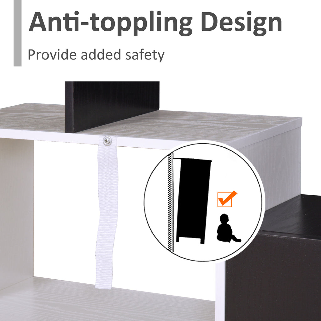 Libreria scffale di è caratterizzato da colore misto di nero e bianco, moderno si adatta perfettamente all'arredo della tua camera, del studio o del tuo ufficio. Dispone di 3 ripiani aperti per libri, riviste o giocattoli, 4 cubi con pannelli posteriori per piccoli accessori e 4 grandi vani espositivi per foto o piante. Con il suo design compatto e le sue grandi capacità di riporre, pratico.