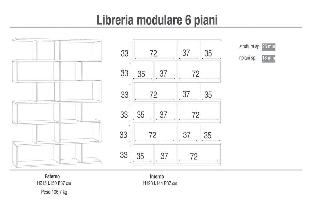 Libreria Modulare 6 Ripiani 150x215x38 cm Ossido Bianco