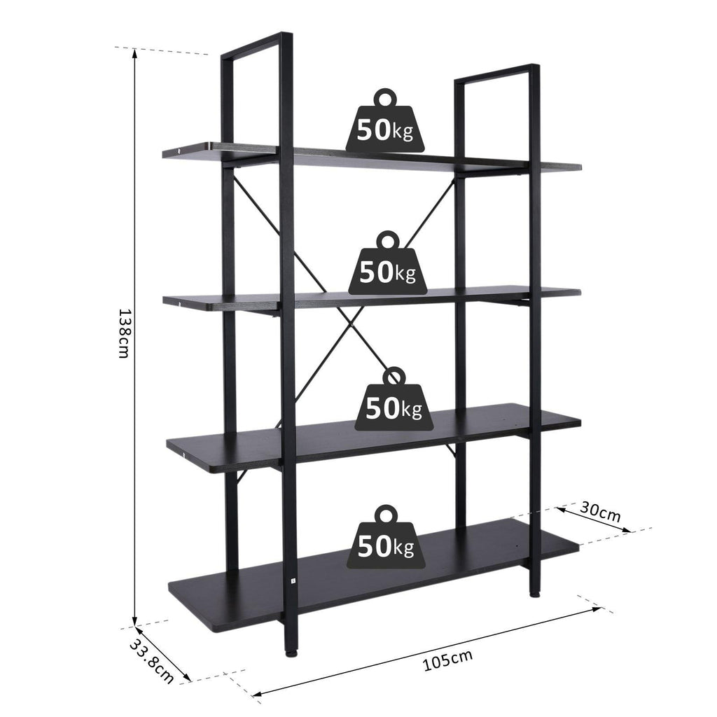 Libreria Scaffale a 4 ripiani aperti stile industriale in acciaio Nero 105x33.8x138 cm