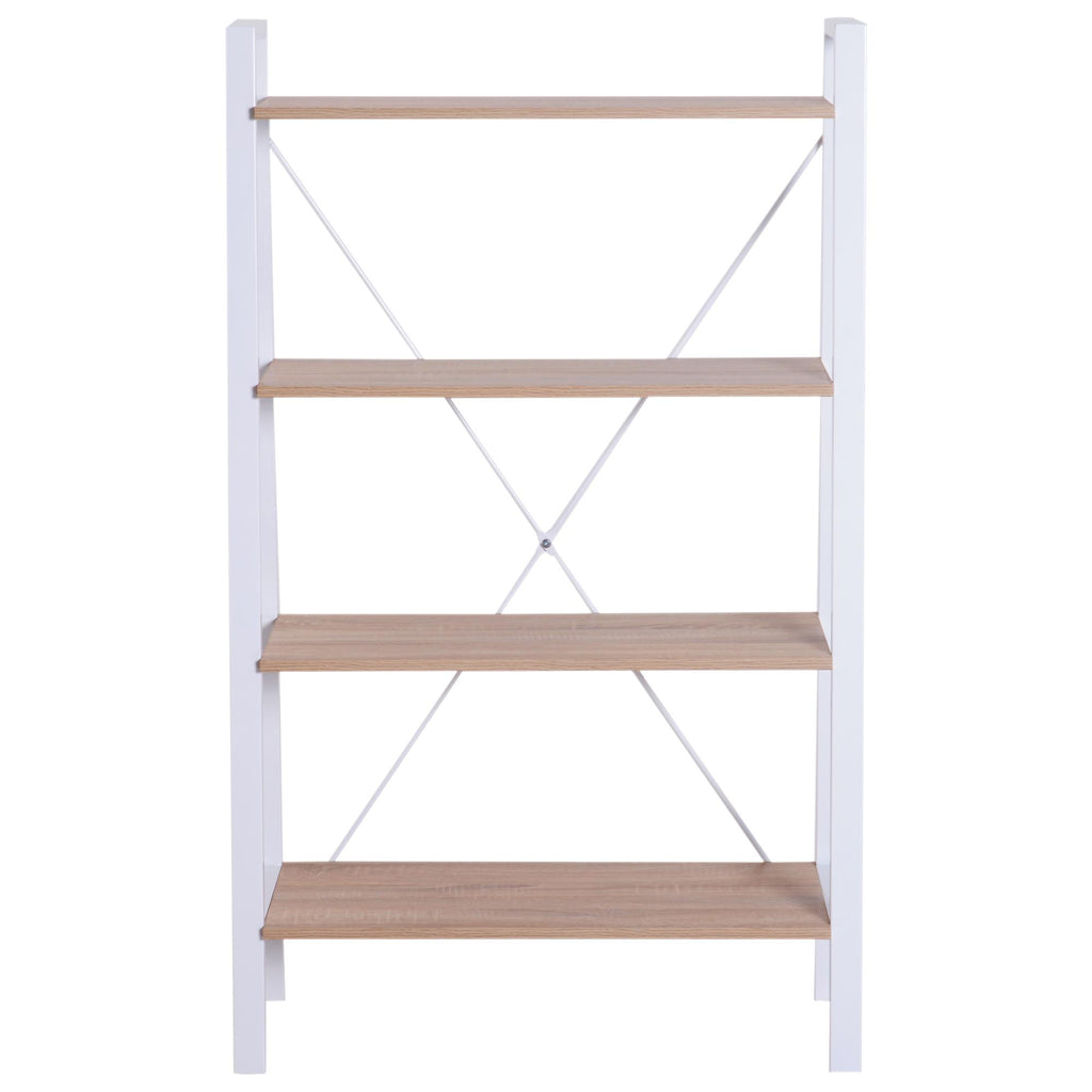 Libreria Scaffale a Scala 4 Ripiani in Legno e Acciaio Bianco e Rovere 80x33x133.5 cm