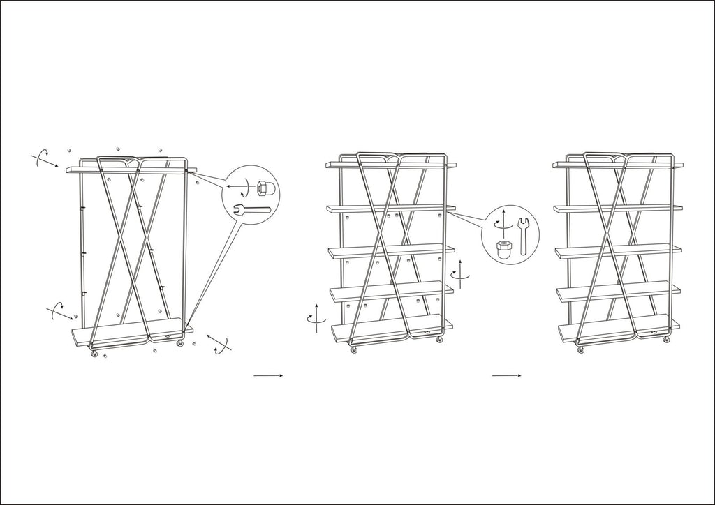 Libreria in metallo e legno con 5 ripiani. Linee essenziali e colori chiari per uno stile industrial deciso ma sobrio.