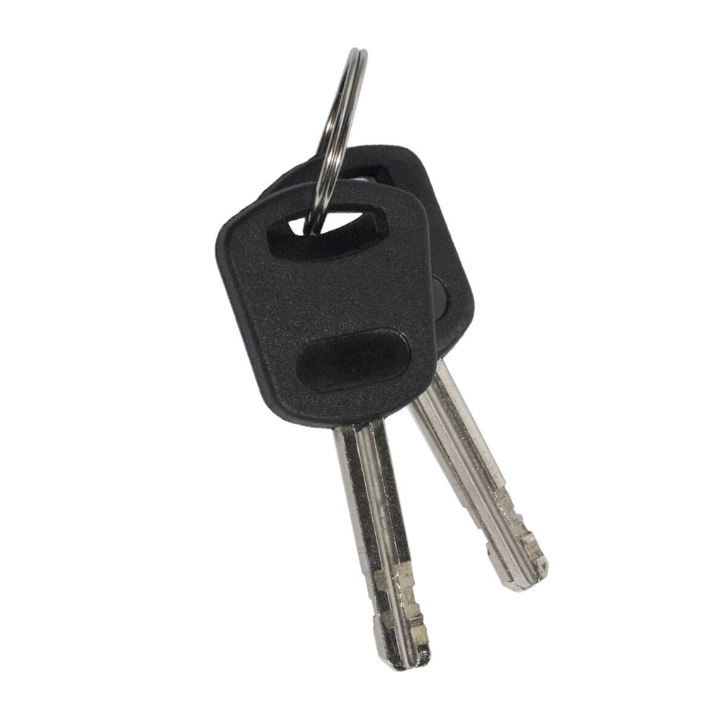 Bloccadisco in acciaio da 70 mm con perno da 5 mm. Dotato di serratura con protezione antipolvere. In dotazione tre chiavi. Completo di custodia da manubrio.