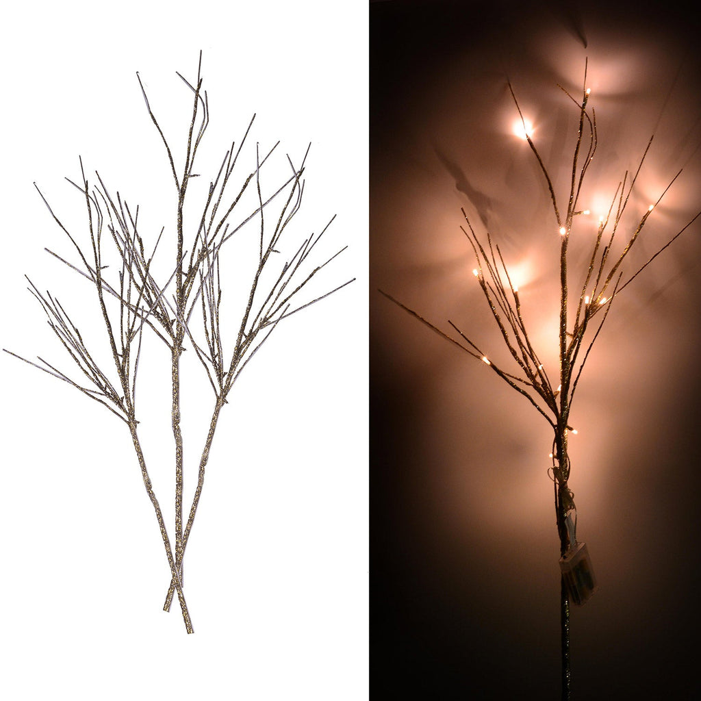 Luci di Natale rami glitter oro argento 72 Led bianco caldo cm 40x40xh100