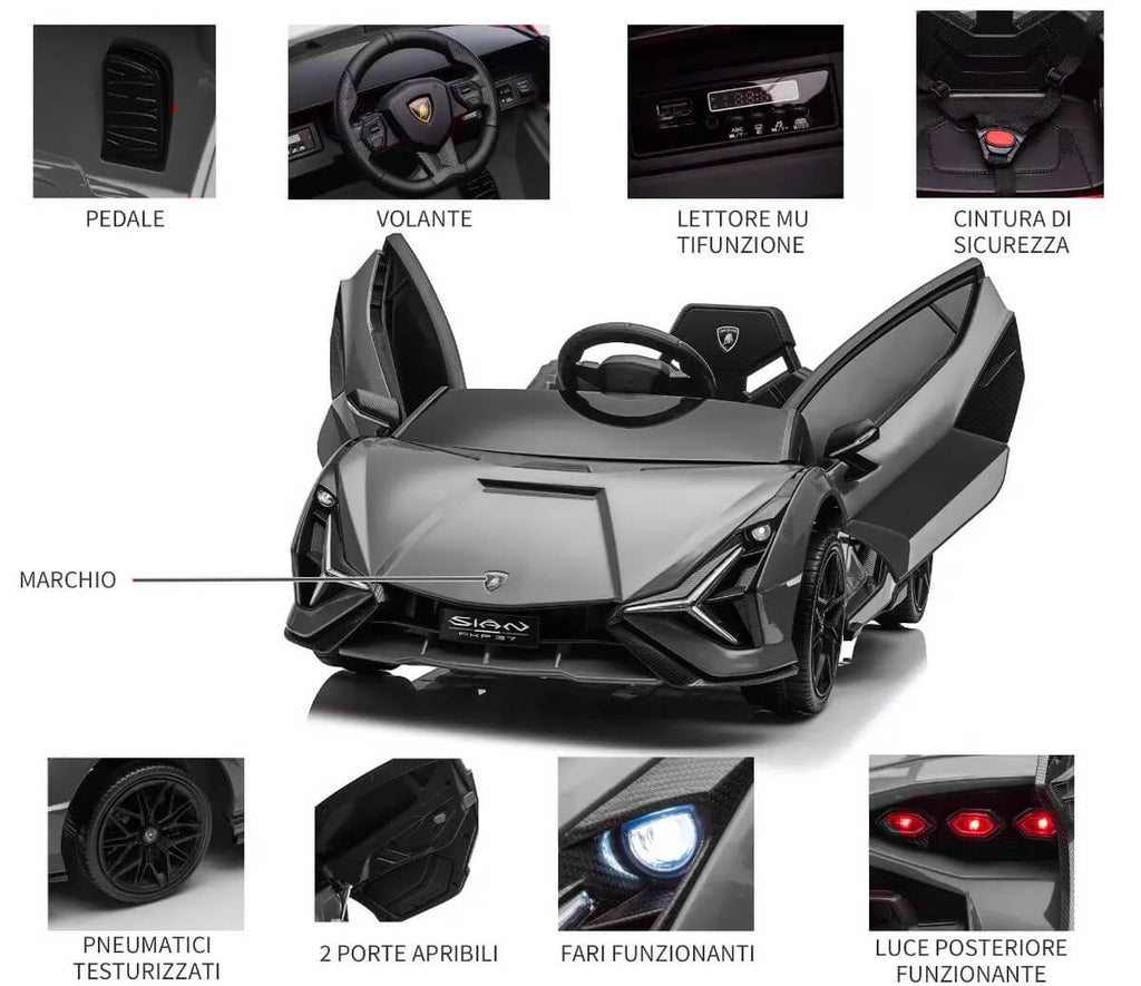 Macchina Elettrica per Bambini 12V con Licenza Lamborghini Sian FKP 37 Nera Metallizata