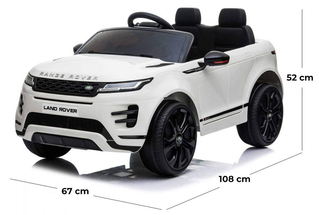Regala a tuo figlio forti emozioni con la bellissima Land Rover Evoque con licenza originale Land Rover, l'automobile piu' trendy del momento! Design elegante e sportivo, una perfetta riproduzione dell'originale Land Rover Evoque per adulti, un prodotto unico e all'avanguardia curato in ogni minimo dettaglio, che identifica uno stile sia sportivo che elegante, presentando un carattere di grande qualità e sicurezza che solo un marchio automobilistico come Land Rover può garantire. I vostri piccoli avranno la possibilità di vivere un'esperienza di guida vicinissima alla realtà guidando un auto in miniatura con i vantaggi e i comfort di una vera e propria automobile. La macchina può muoversi in marcia avanti e in retromarcia grazie all'accelerazione a pedale, inoltre grazie al radiocomando parentale a infrarossi incluso, potrete prendere i comandi dell'auto a distanza se il vostro bambino è troppo piccolo per farlo, o semplicemente per la vostra sicurezza.