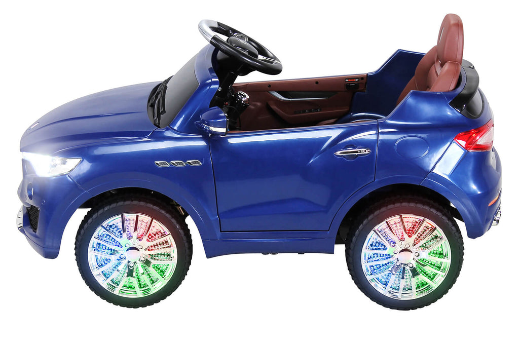 Fari a LED che assicurano una buona visibilità durante la guida, e l'illuminazione con cambi di colore su ruote e freni sono un vero colpo d'occhio rendendo queste stupenda Maserati Levante Deluxe un vero e proprio gioiellino per i piccoli piloti.