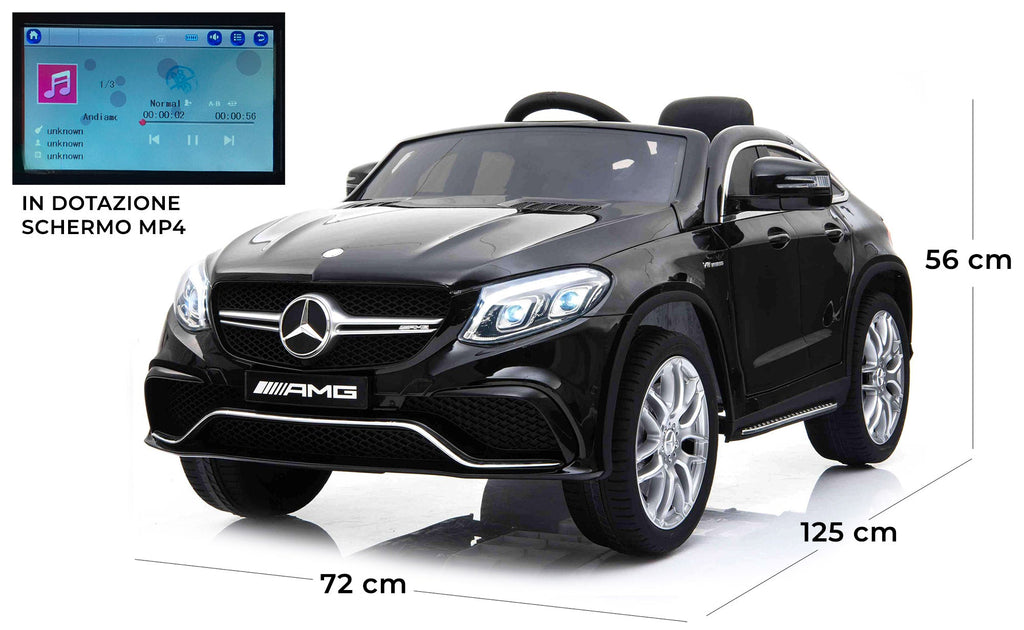 Macchina Elettrica per Bambini 12V 1 Posto con Display Mp4 Mercedes GLE 63 AMG Coupè Nera