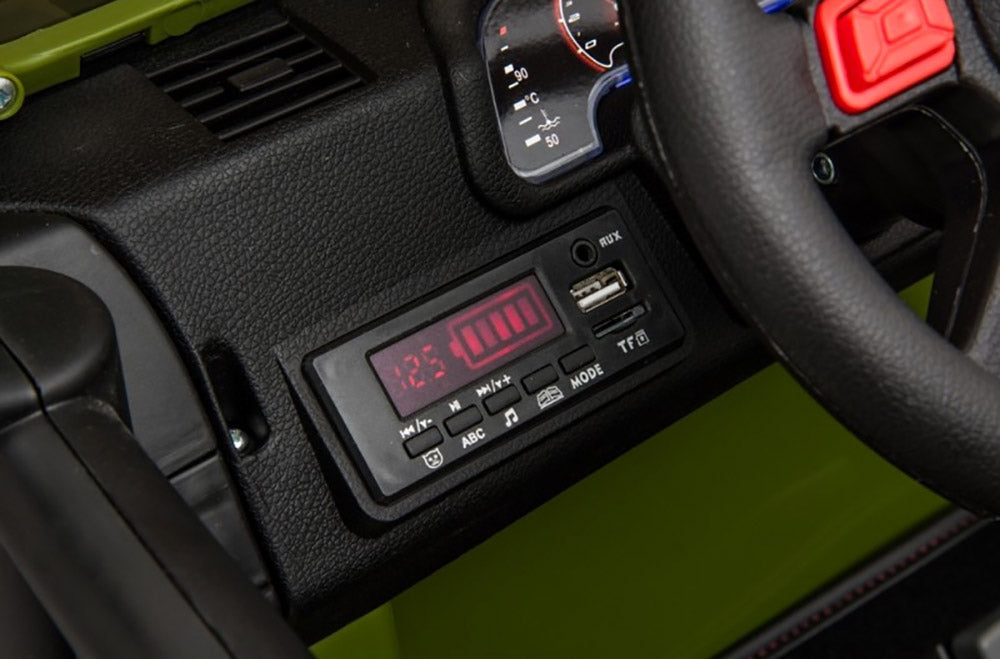- Telecomando parentale 2.4G intelligente con selettore a 3 velocità in avanti,1 in retromarcia e pulsante freno. La vettura può essere attivata con i controlli manuali, attraverso l'uso del pedale, le marce avanti / indietro e il volante, o a distanza con il telecomando parentale. Questo funziona fino ad un raggio di circa 10 m, può controllare il cambio di 3 velocità in avanti,1 in retromarcia e girare il volante a destra e a sinistra. La particolarità di questo telecomando 2.4G è il soft start con partenza rallentata del veicolo e aumento progressivo della velocità in modo da non spaventare il bambino con una partenza a scatto. Con il pulsante freno il genitore può fermare il veicolo tramite il telecomando anche quando il bambino guida da solo.
