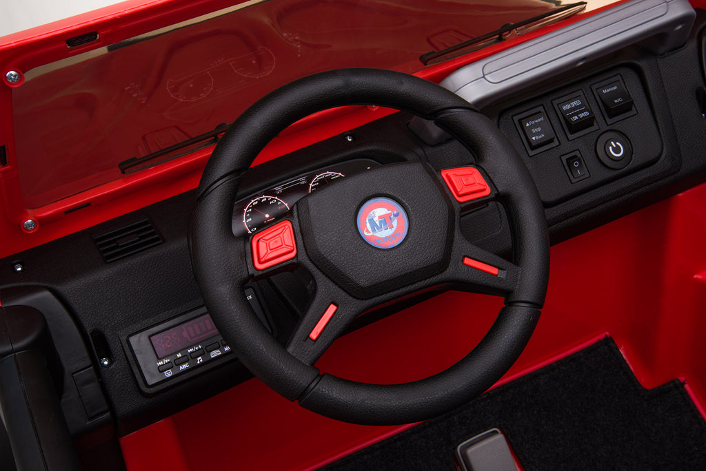 - La vettura è dotata di due cintura di sicurezza, una per ogni bambino per tenerli al sicuro se si sceglie di utilizzare la funzione del telecomando.