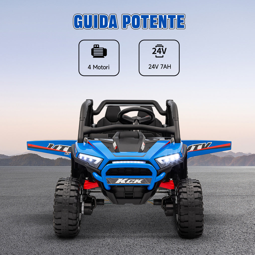 Macchina Elettrica per Bambini 24V Velocità 5-7km/h Guida Manuale e Telecomando Blu