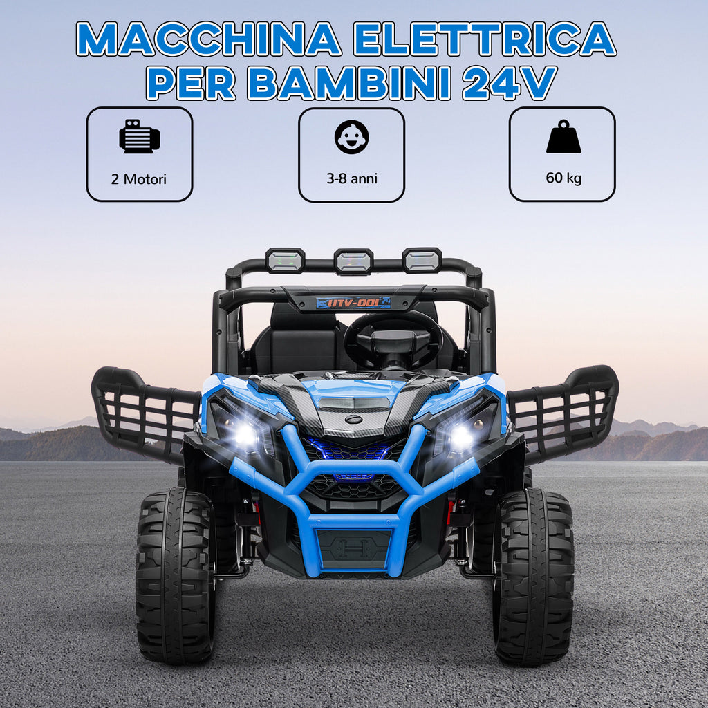 Macchina Elettrica per Bambini a 2 Posti Doppio Motore 24V 3 Velocità Blu