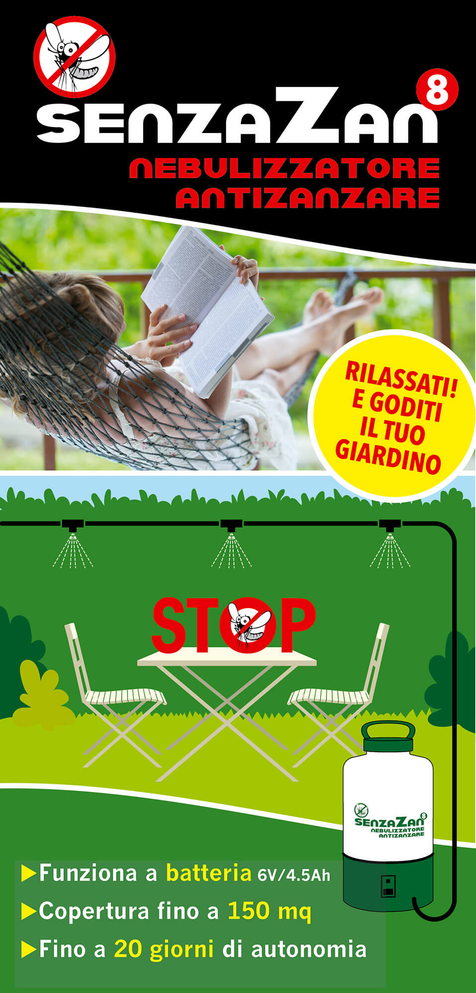 6 minuti di nebulizzazione programmata al giorno e vivi il tuo giardino in pieno Relax SenzaZan!
