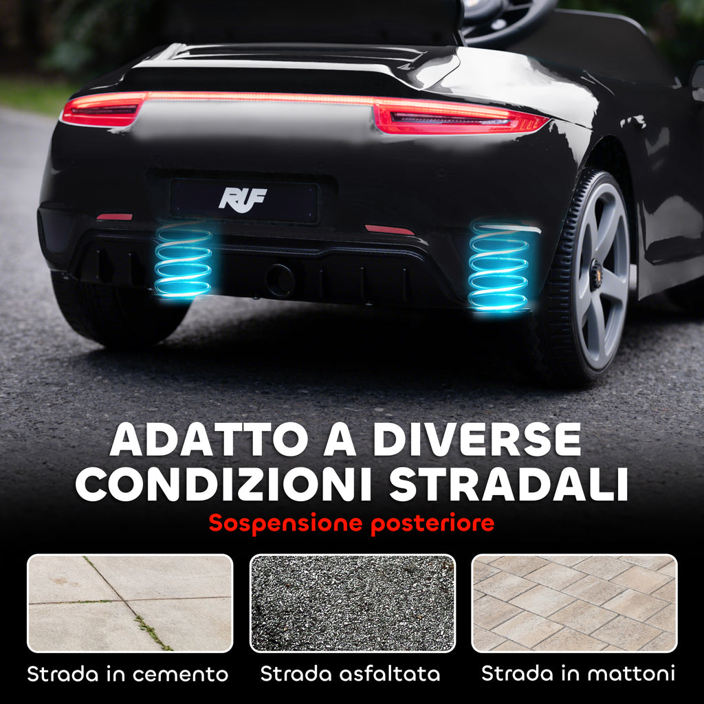 Macchina per Bambini 3-5 Anni con Licenza Ufficiale RUF GT Telecomando Cintura di Sicurezza e Musica Nero