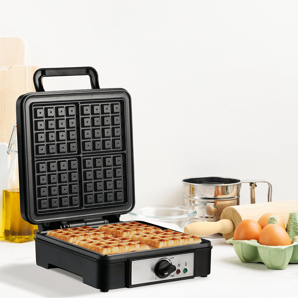 Vuoi concederti una pausa golosa o una colazione sfiziosa? Con la macchina per waffle rendi più dolce ogni momento! Puoi preparare 4 waffle contemporaneamente in soli 4 minuti, così potrai gustarli in compagnia. La piastra per waffle è antiaderente e facile da pulire, e puoi regolare la temperatura secondo le tue esigenze. Attrezza subito la tua cucina con la nostra macchina per waffle!
