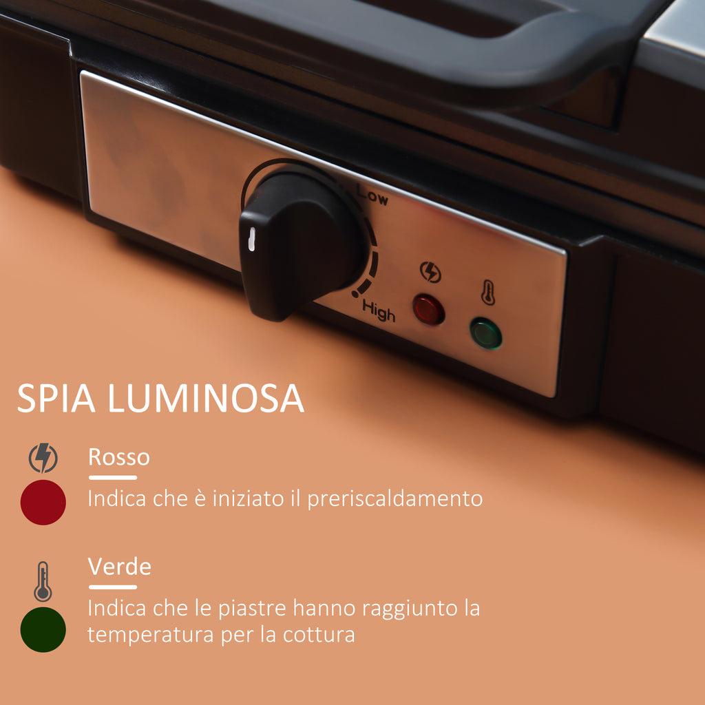 Macchina per Waffle 1200W Piastre Antiaderenti in Acciaio Nero