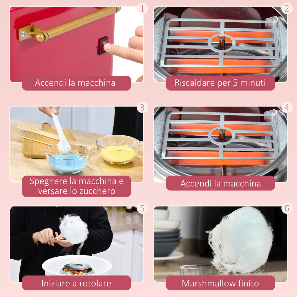 - ACCESSORI INCLUSI: La macchina per zucchero filato include 10 bastoncini di bambù. Dimensioni generali: 30L x 30P x 28Acm. Montaggio richiesto