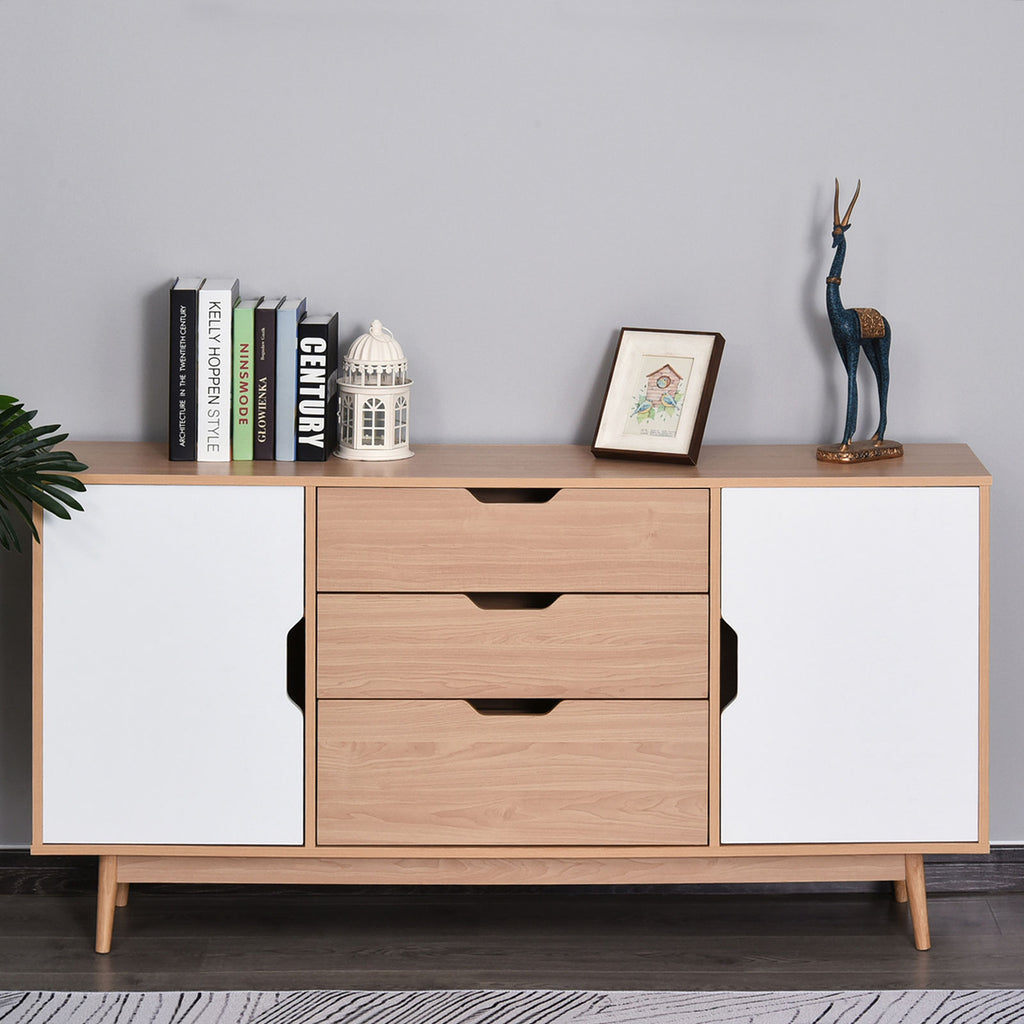 Madia 2 Ante 3 Cassetti Design Scandinavo in Legno Rovere 145x30x75 cm Bianca e Naturale