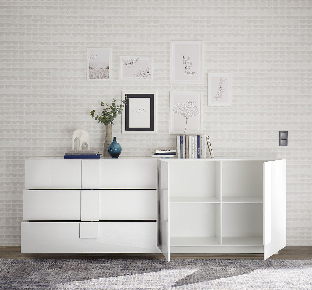 Giordanoshop - Cod: 308513 Madia Design Moderno 1 Anta 3 Cassetti Jupiter 182x44x90 cm Bianco laccato lucido