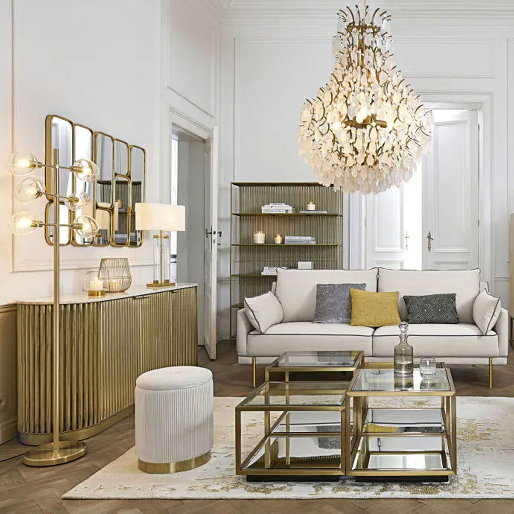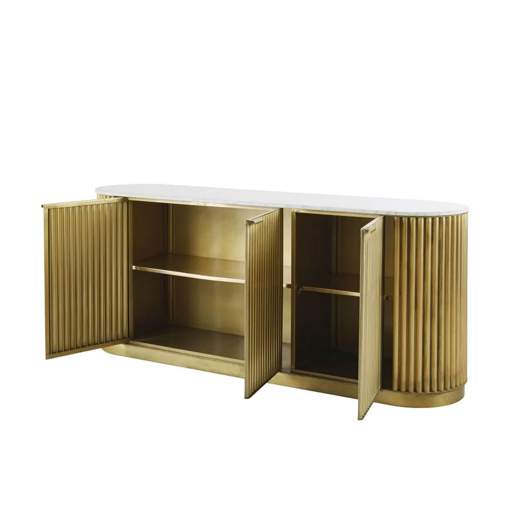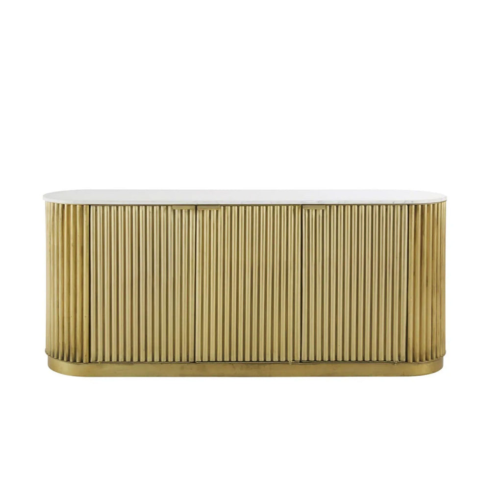 Madia in metallo oro opaco con base in marmo 3 ante Dimensioni: 185 x 45 x 80 cm