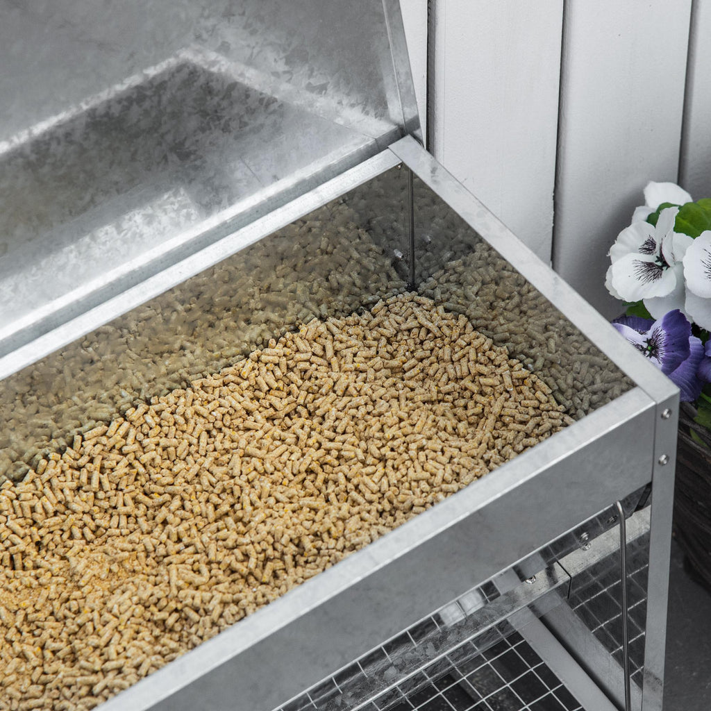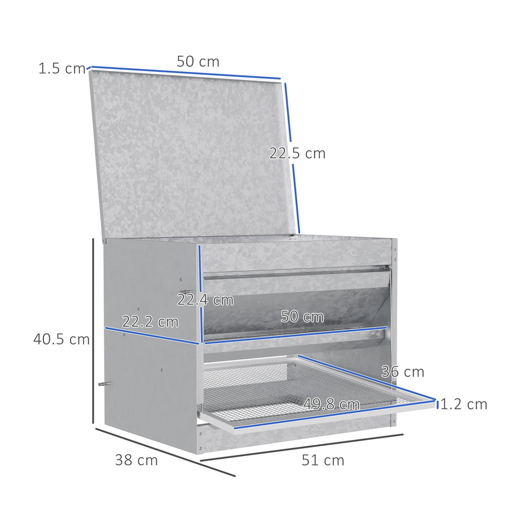 Mangiatoia per Galline 51x38x40,5 cm in Metallo Zincato e Acciaio Inossidabile Argento