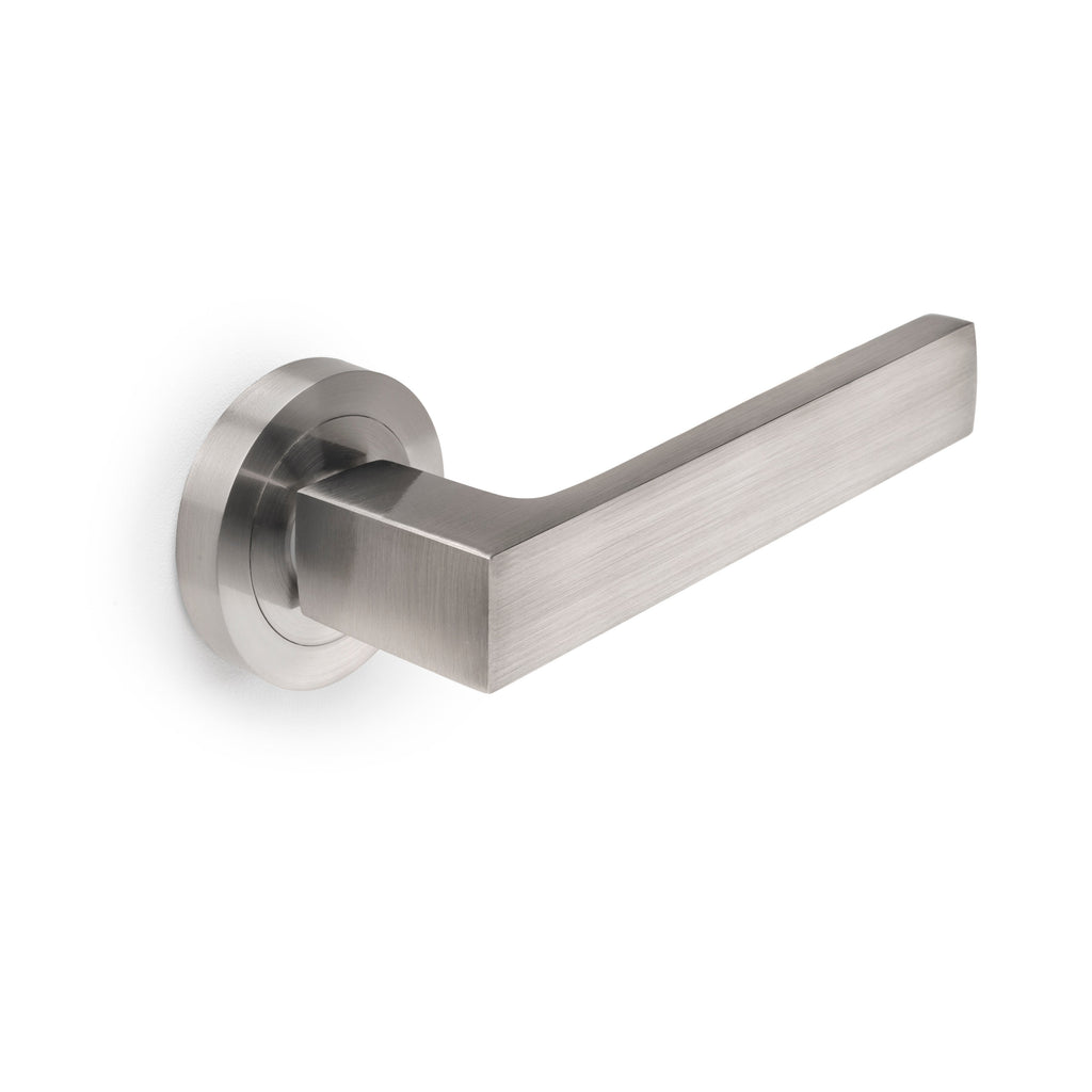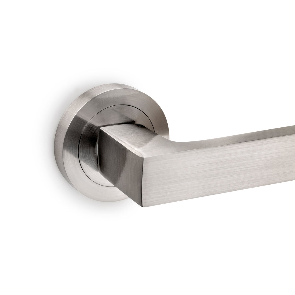 Maniglie Mackay per Porta da Interno con Rosetta Ø50 mm Alluminio Nickel Satinato 5 Sets. Emuca