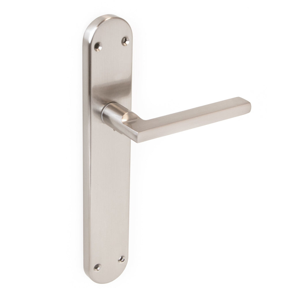Maniglie Perth per Porta da Interno con Placca 43 x 250 mm Alluminio e Zama Nickel Satinato Emuca