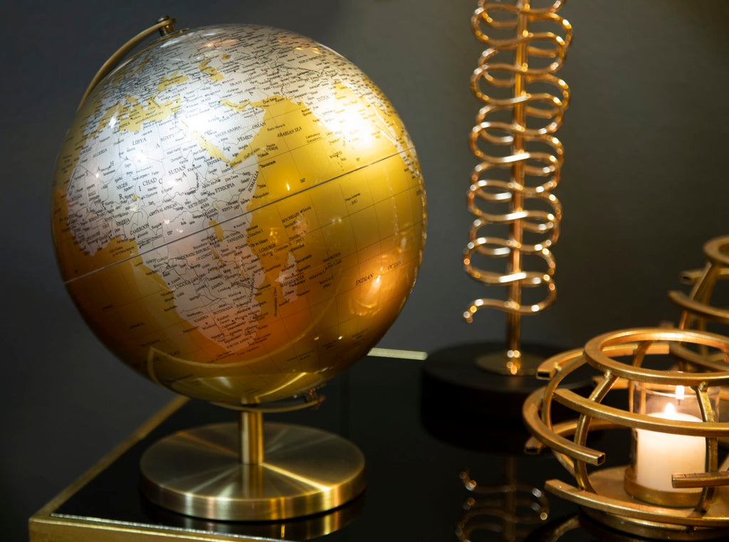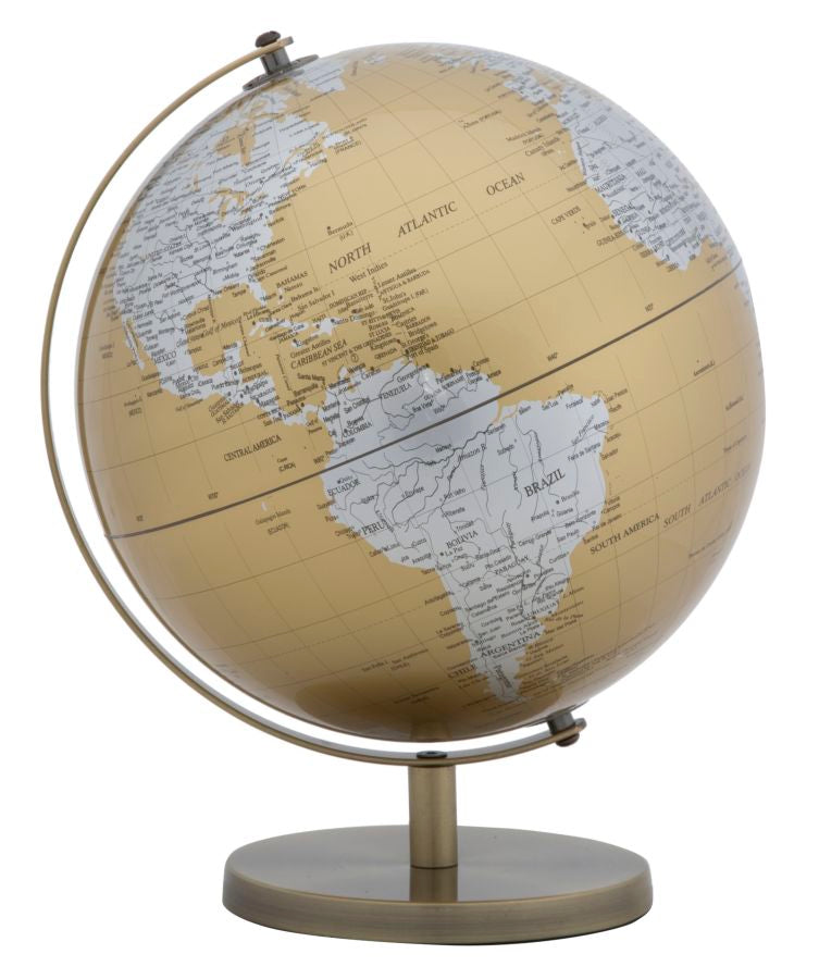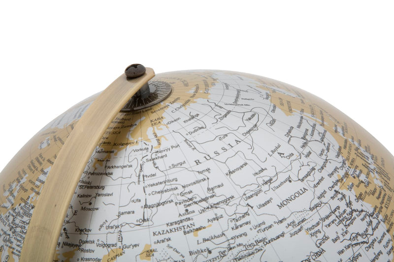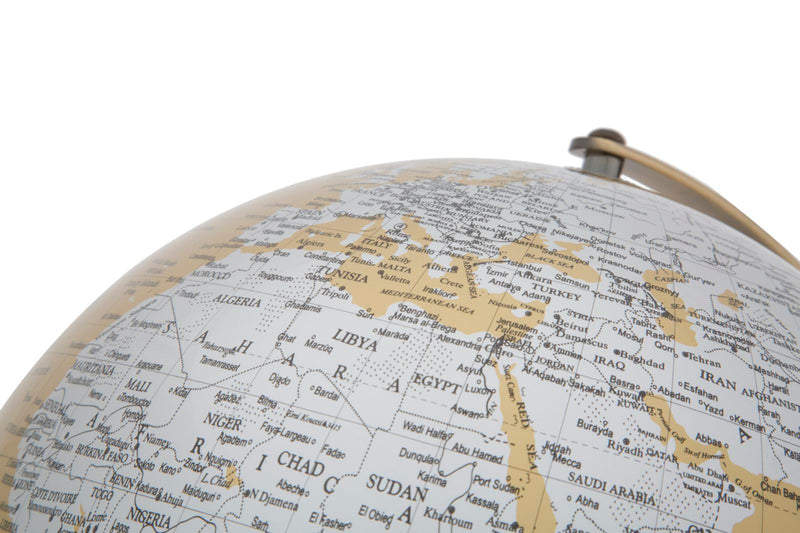 Mappamondo decorativo in materiale plastico con base in metallo. Mostra la tua anima da vero globe trotter grazie a mappamondi sofisticati e glam.