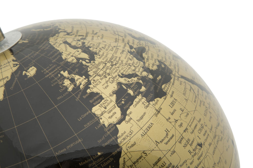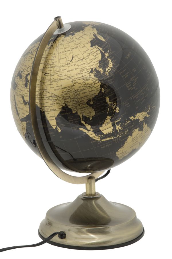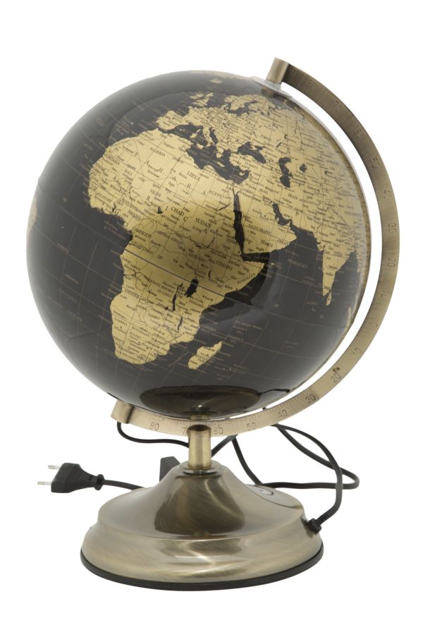 Mappamondo decorativo con luce in materiale plastico con base in metallo. Mostra la tua anima da vero globe trotter grazie a mappamondi sofisticati e glam.