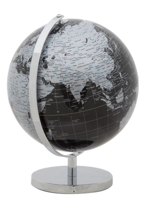 Mappamondo Nero Ø25x34 cm Plastica e Ferro Nero e Argento