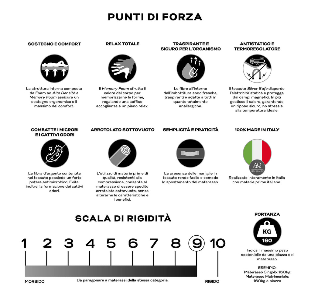 - Struttura interna con Foam ad Alta Densità e Memory Foam