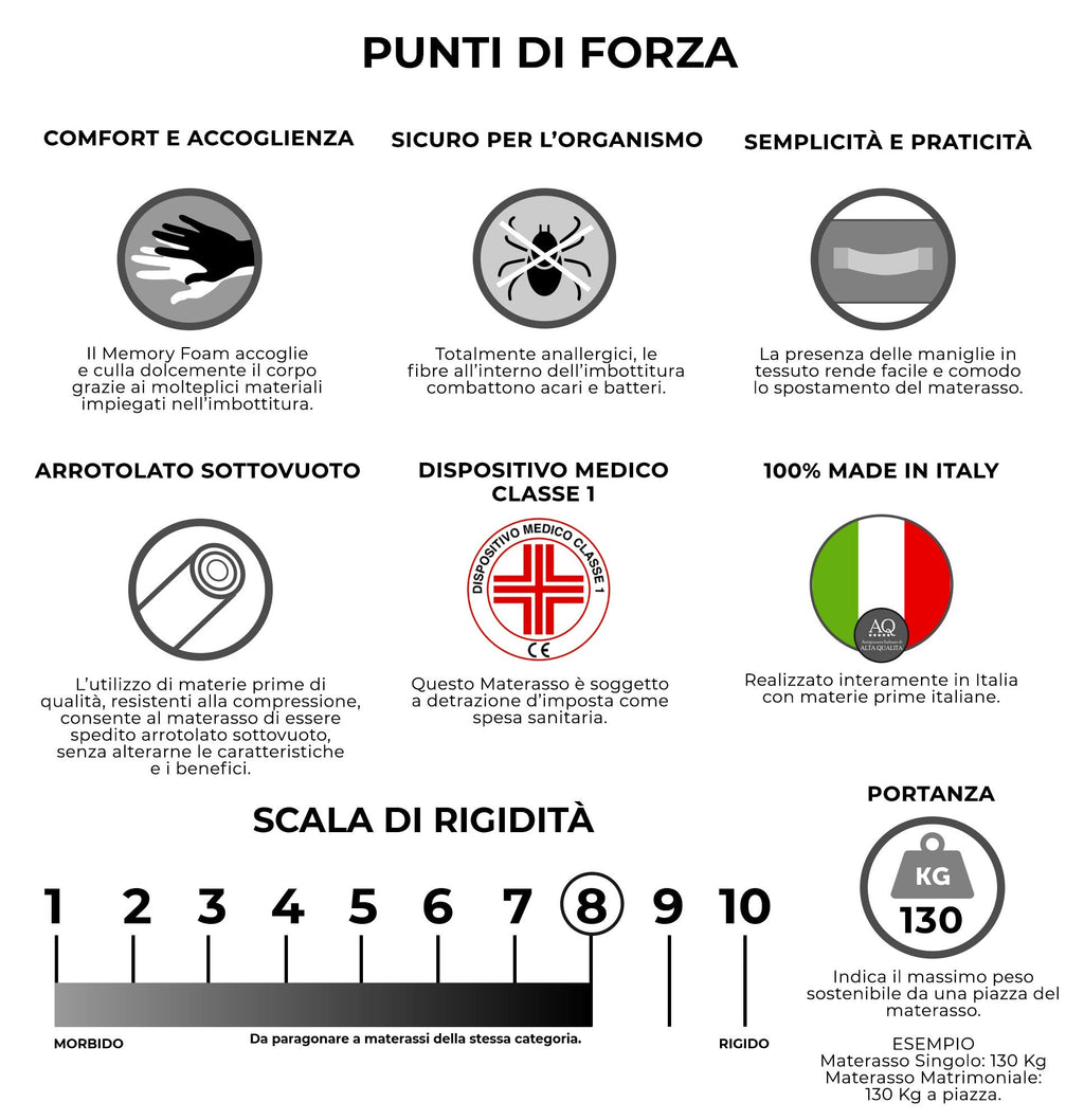 Materasso Memory H26 Dispositivo Medico 1 Dormidea Supreme Varie Misure