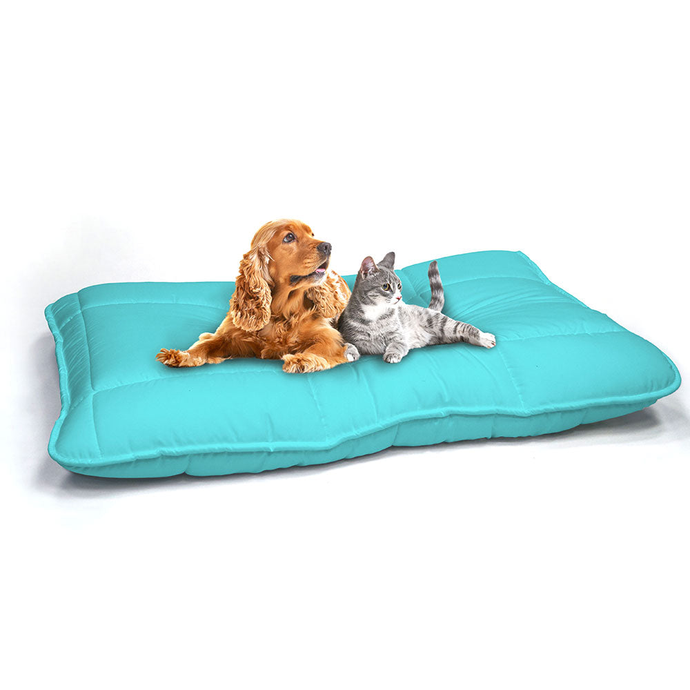 Maxi Cuscino Imbottito e Trapuntato per Cani Gatti in Microfibra Verde Acqua