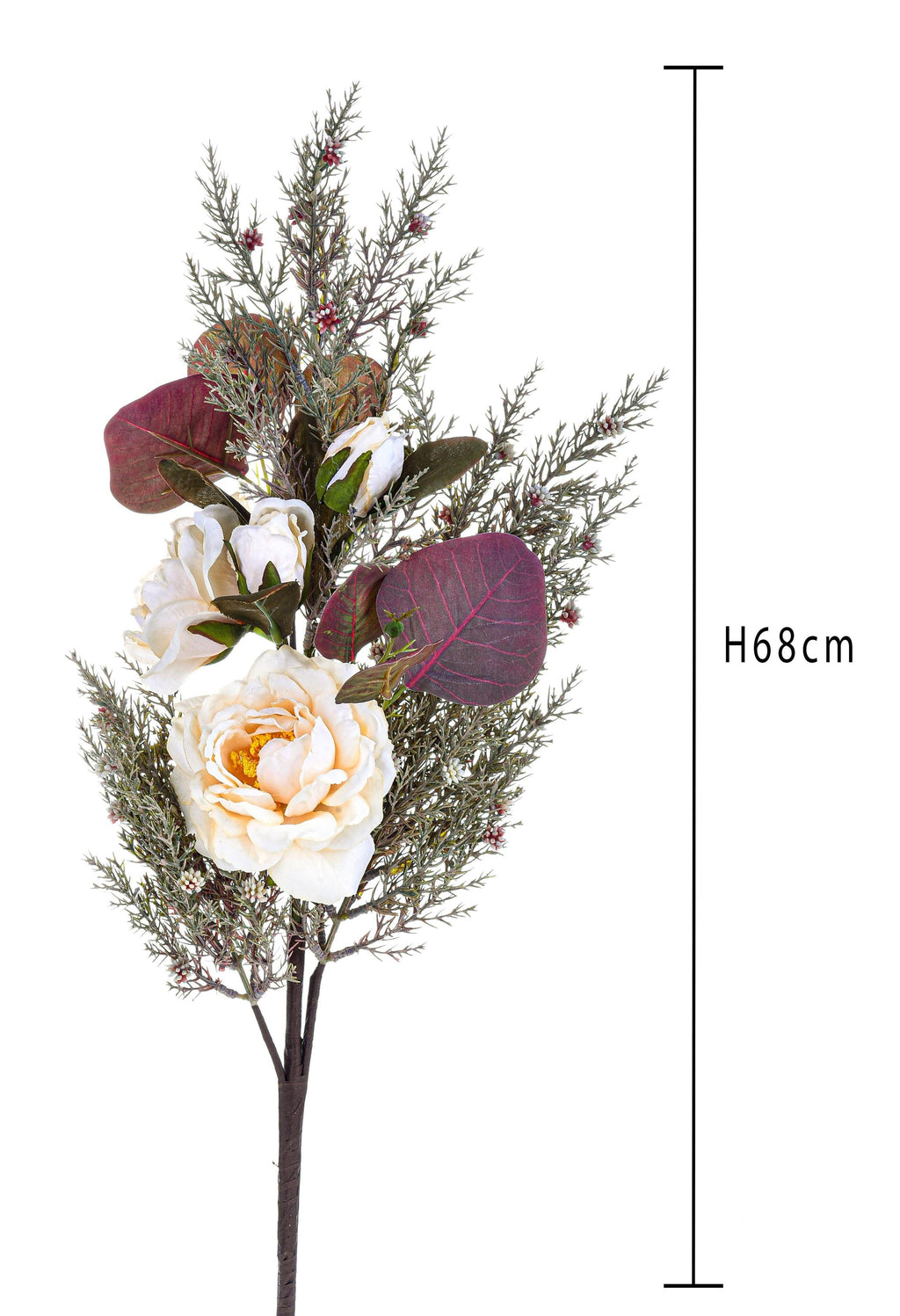 Set 4 Mazzo di Rose Artificiale Dry Look Altezza 68 cm Beige